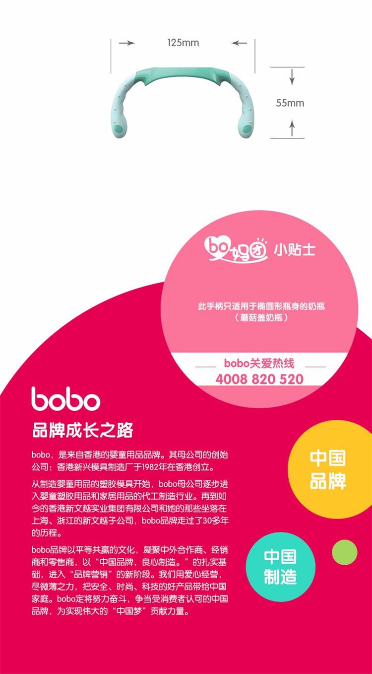 bobo 宽口径奶瓶手柄 BO1802(4色随机发货)4袋JPY带授权招加盟代理