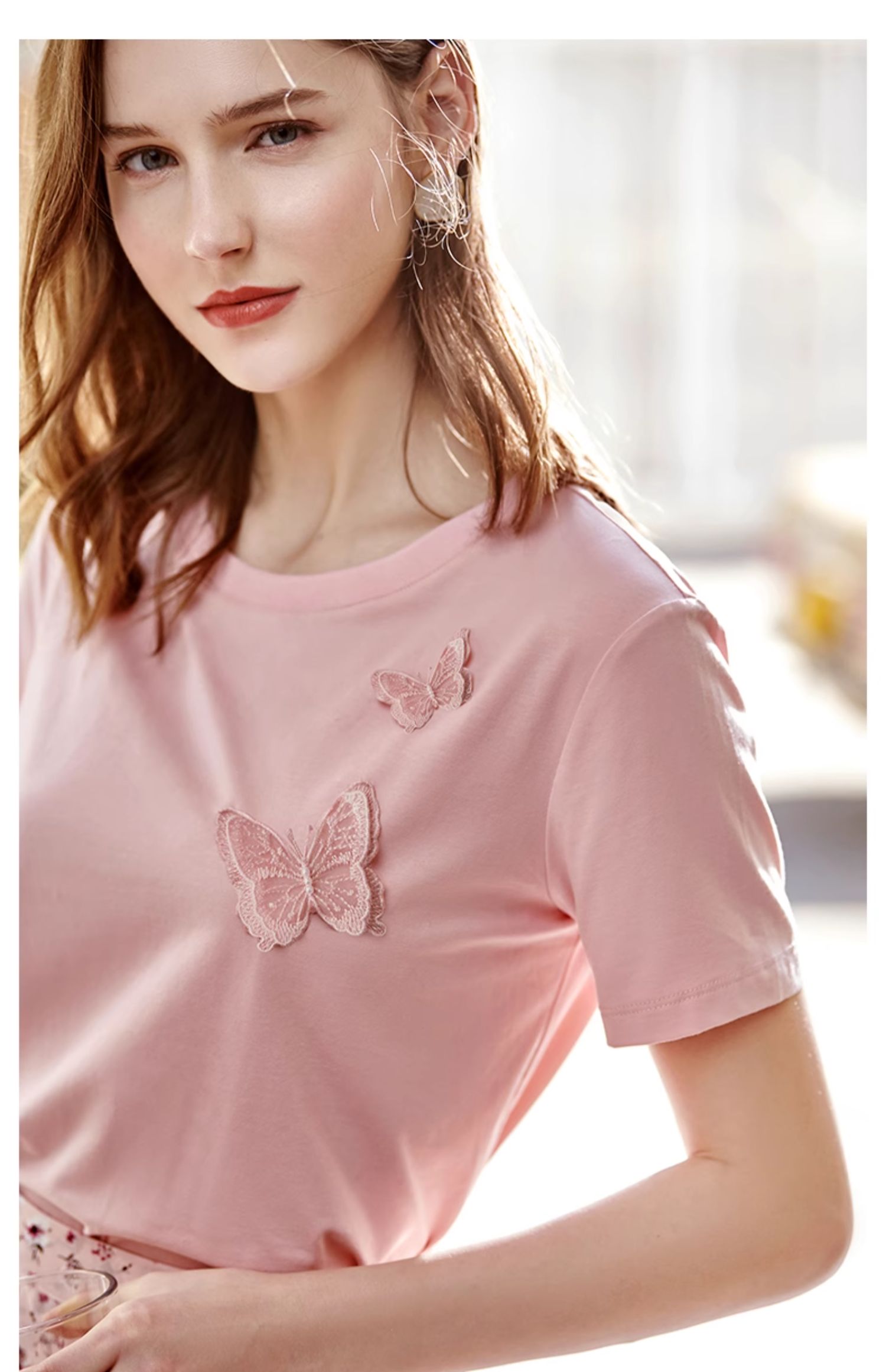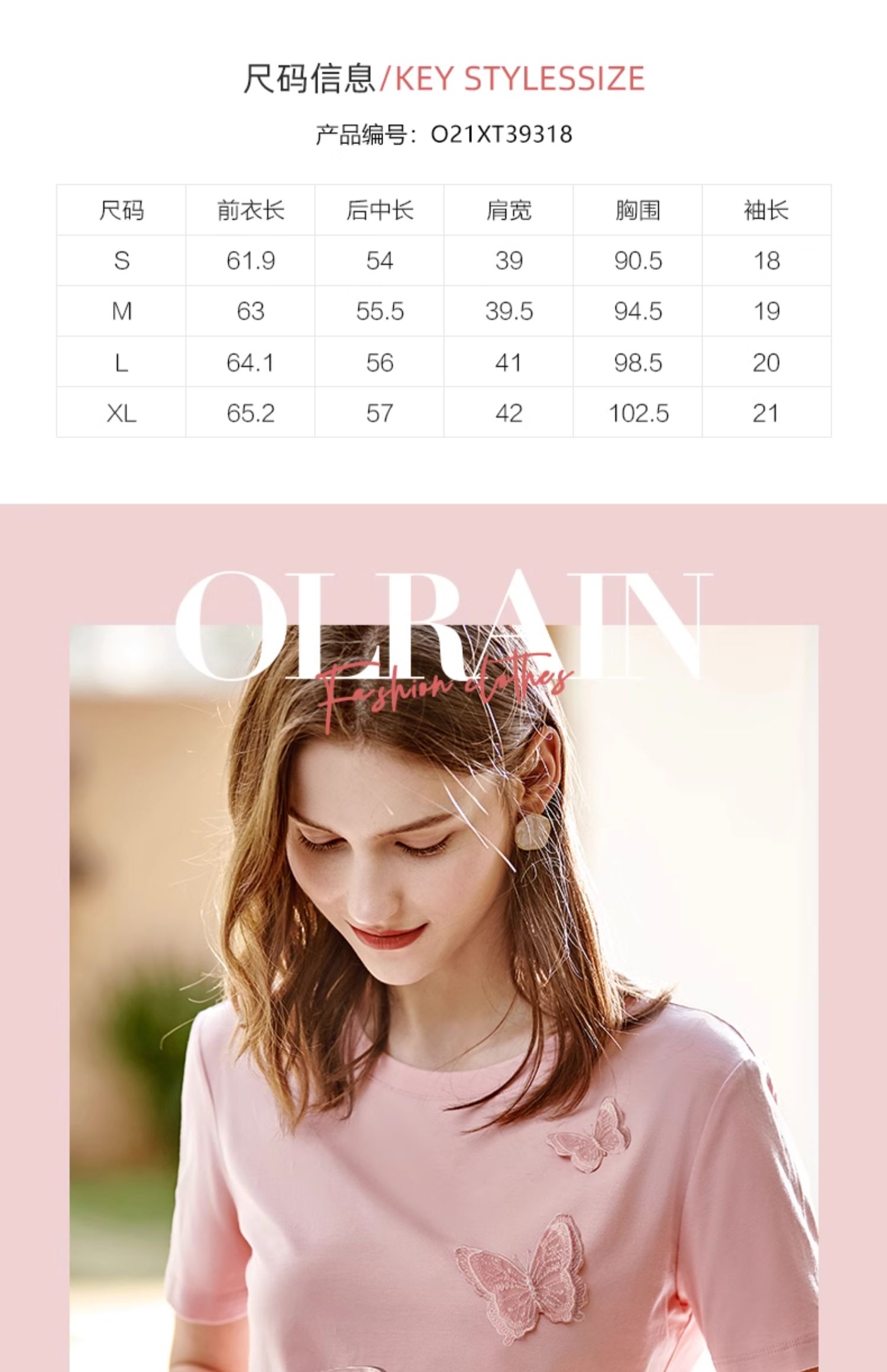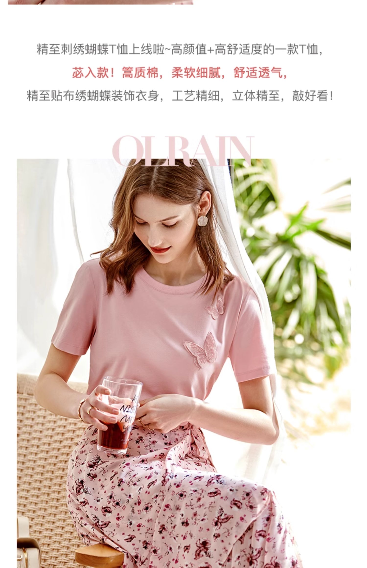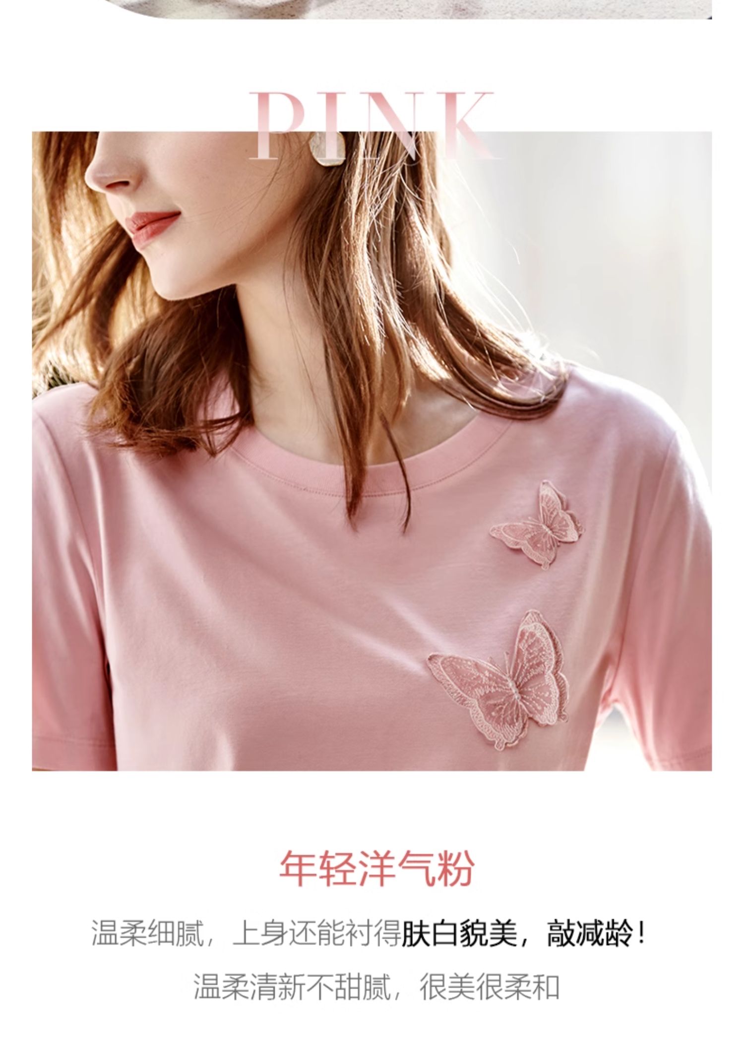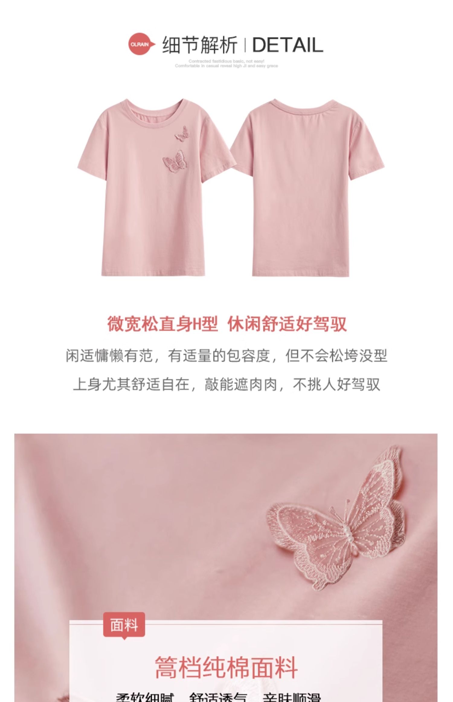欧芮儿立体刺绣蝴蝶T恤2025夏季新款圆领短袖粉色宽松上衣设计感