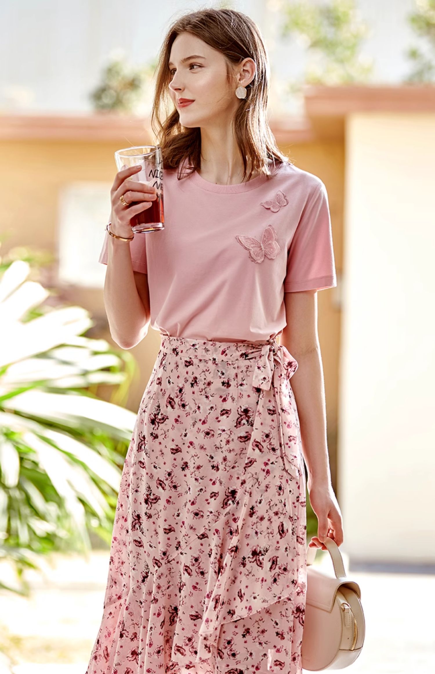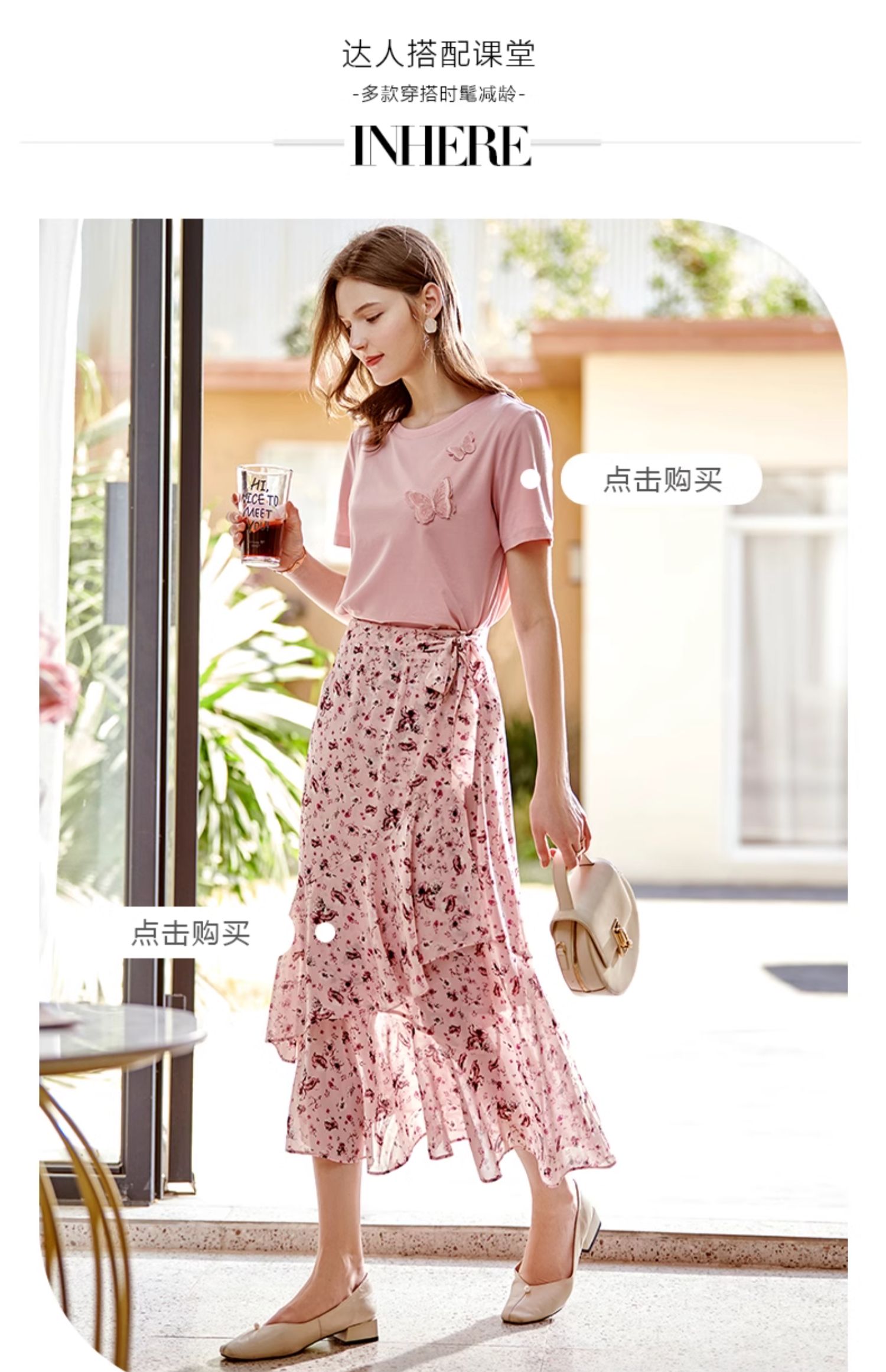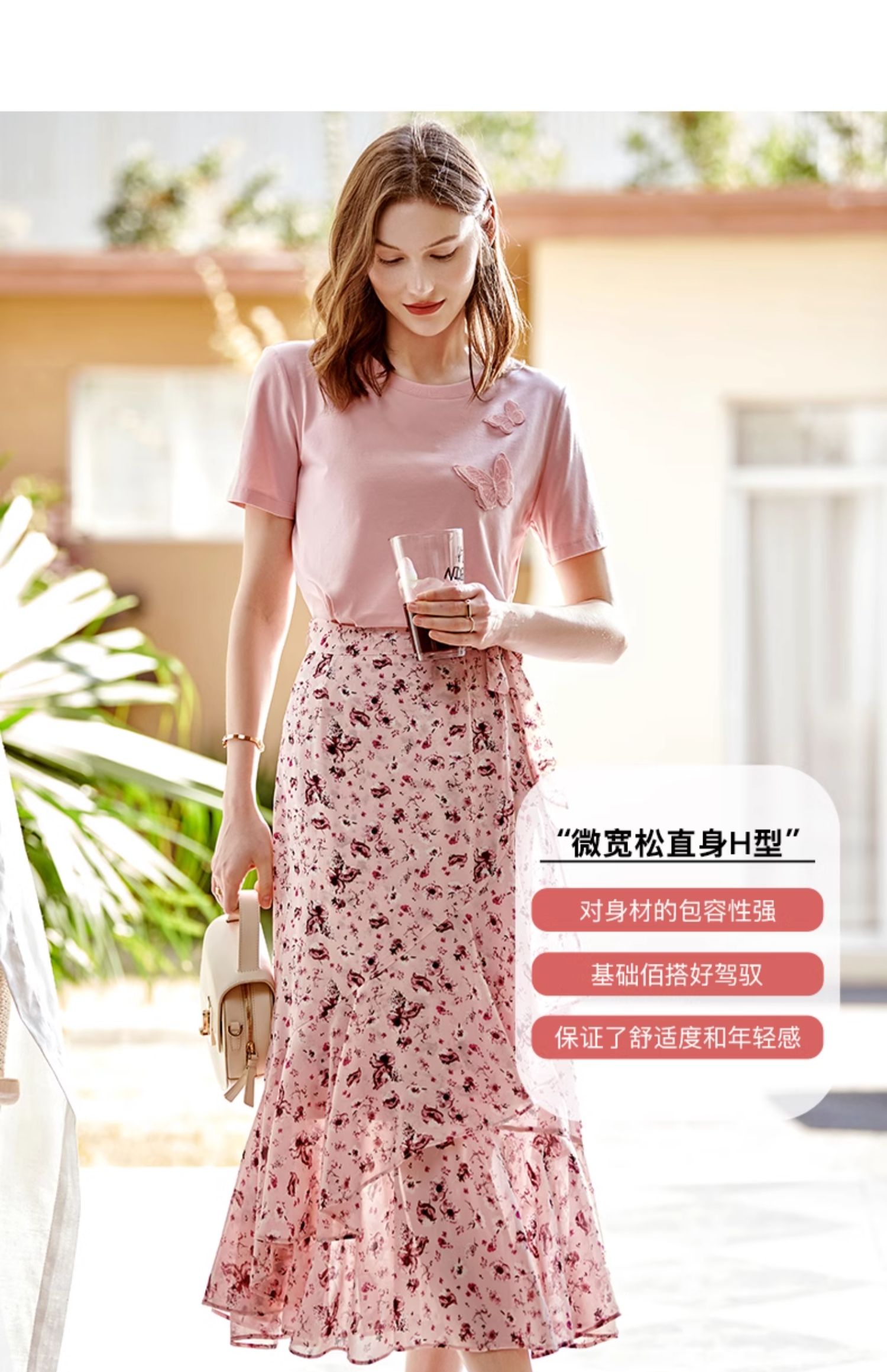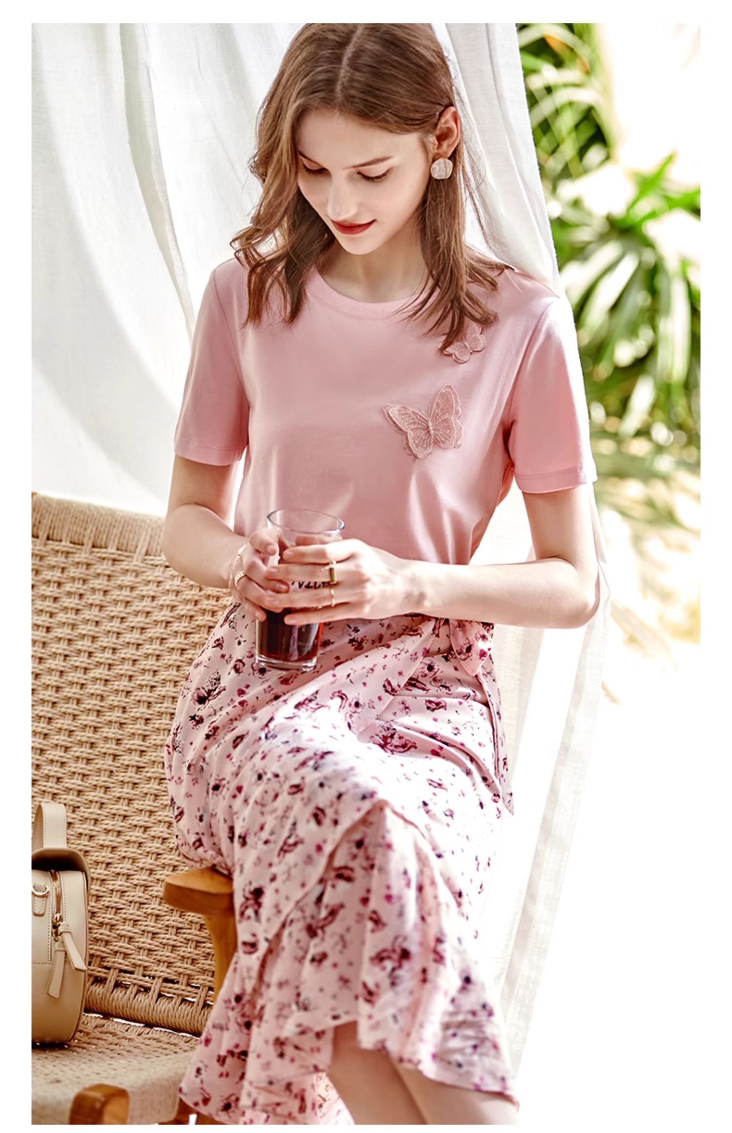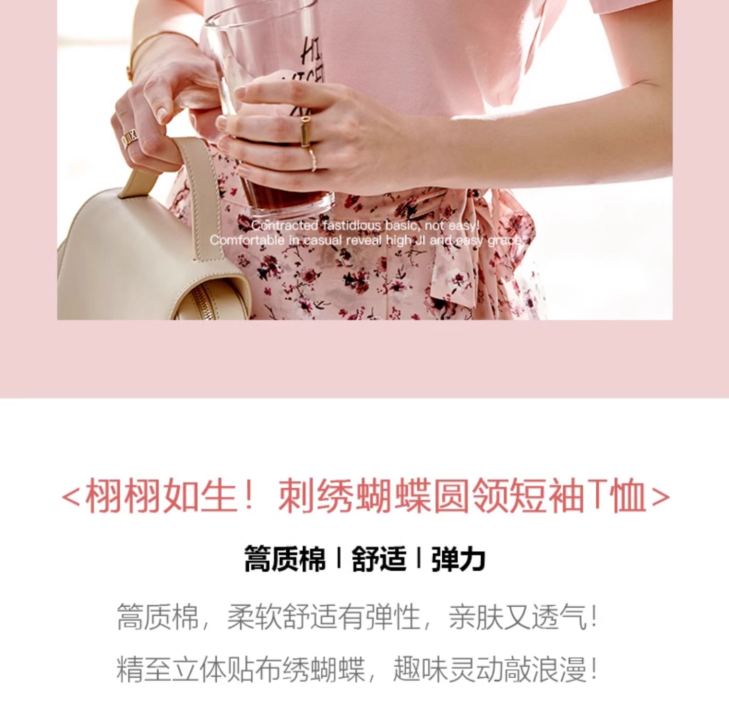 欧芮儿立体刺绣蝴蝶T恤2025夏季新款圆领短袖粉色宽松上衣设计感
