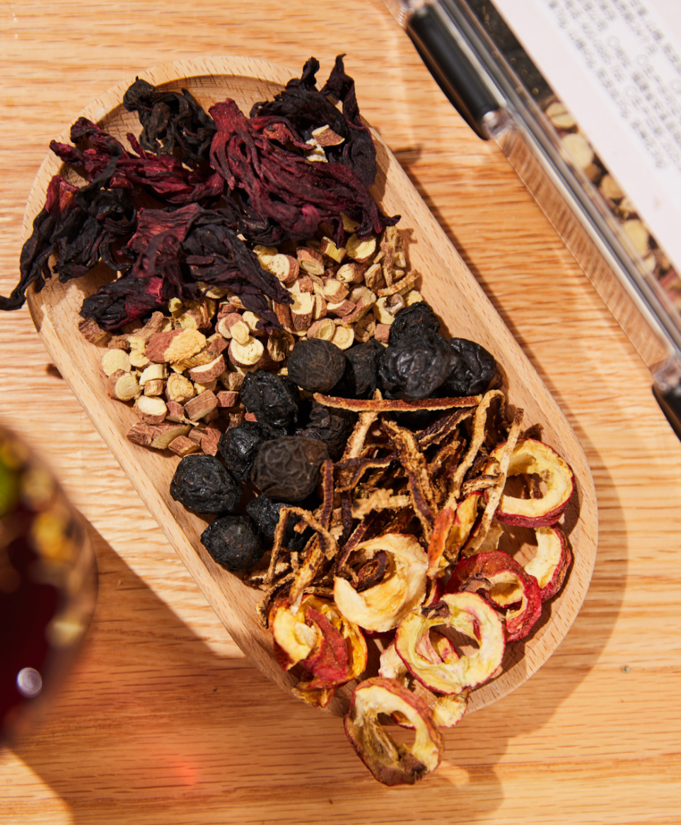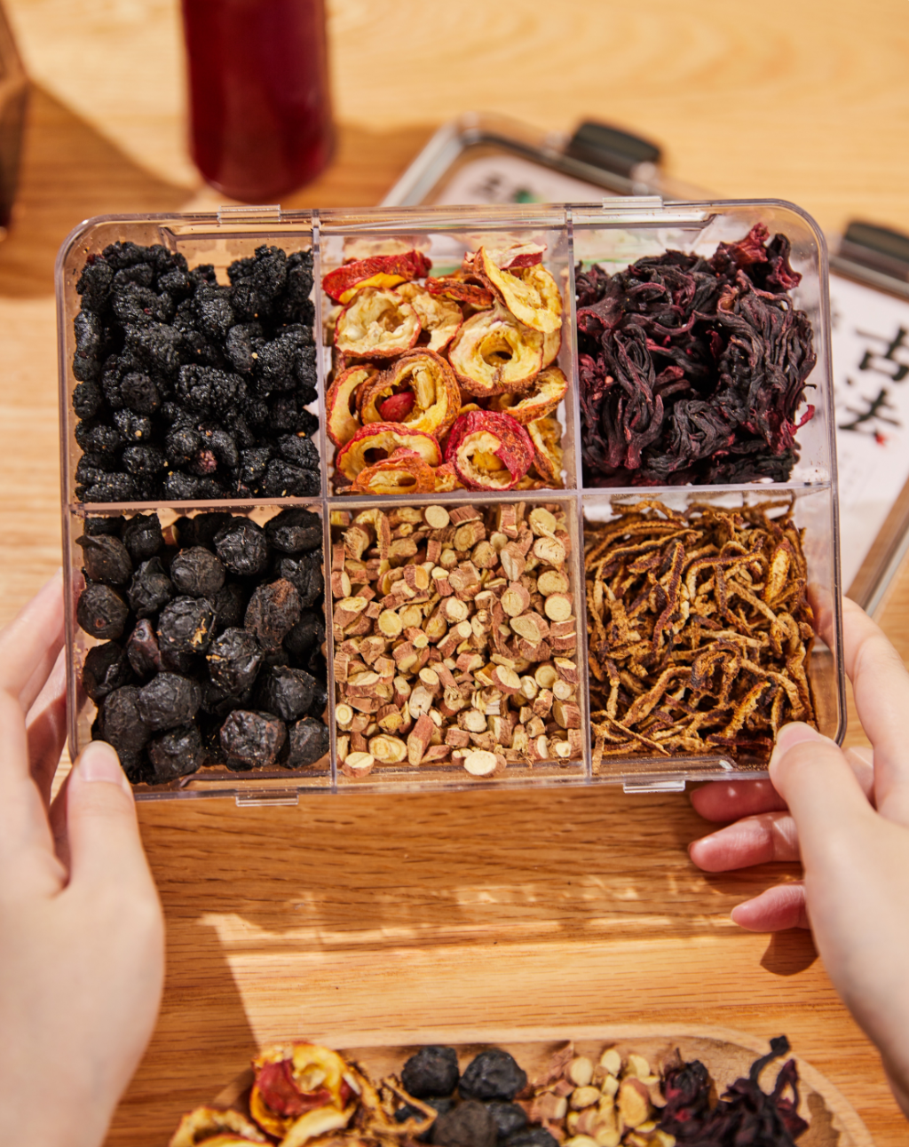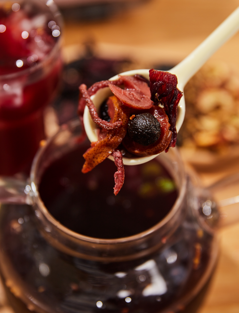 【配料】乌梅、山楂、洛神花、甘草、陈皮丝、桑椹