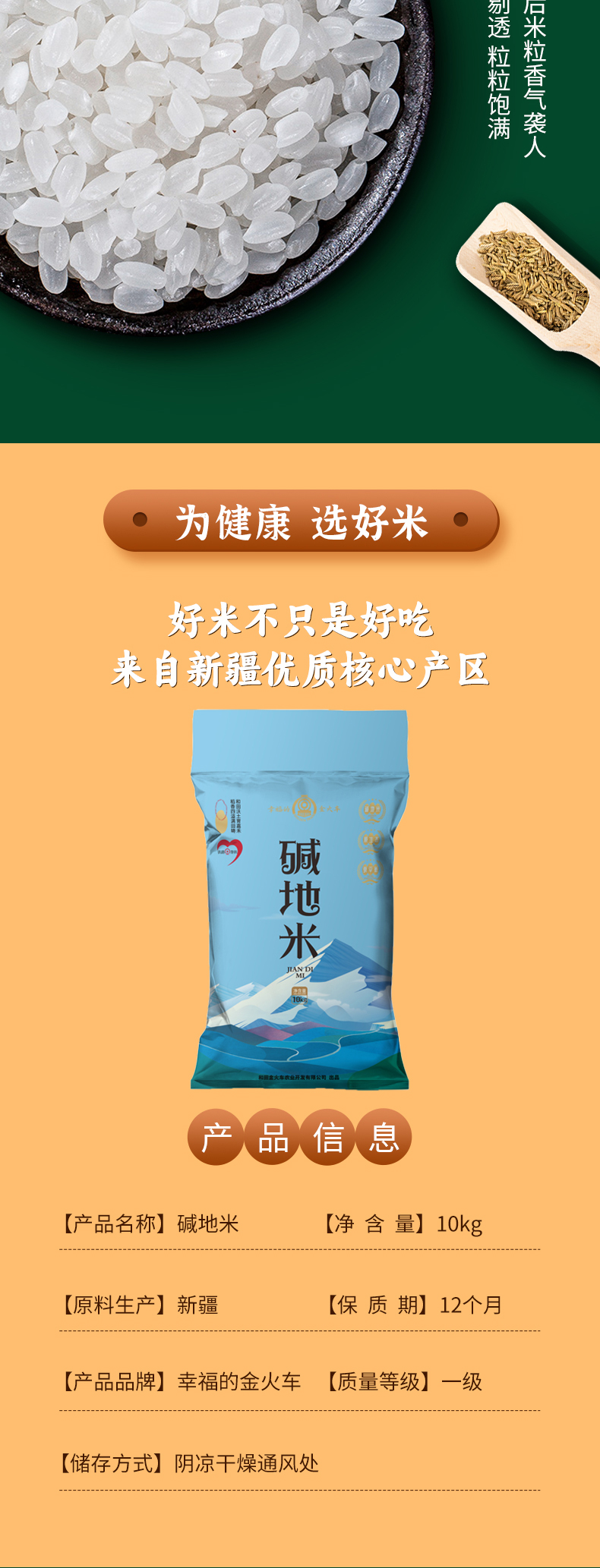 【新疆和田特产馆】幸福的金火车 碱地米10kg/袋