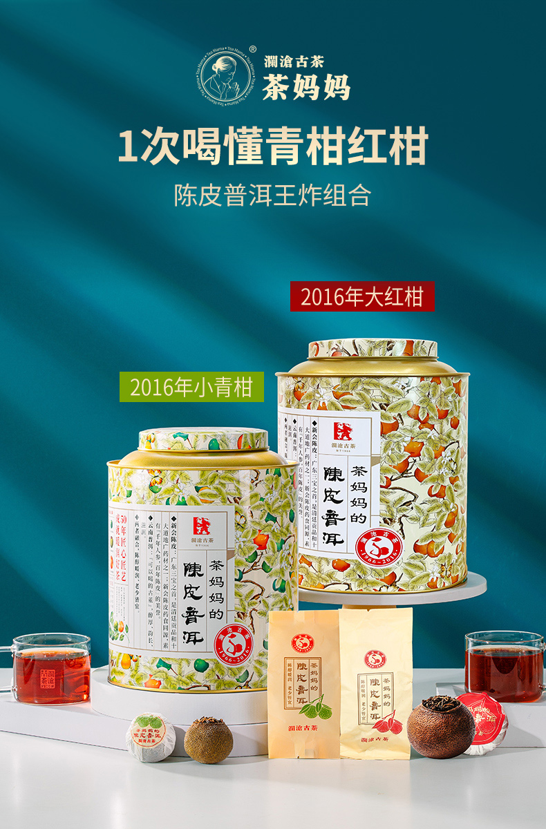澜沧古茶2016年茶妈妈小青柑+2016年茶妈妈大红柑普洱熟茶双罐组合500g