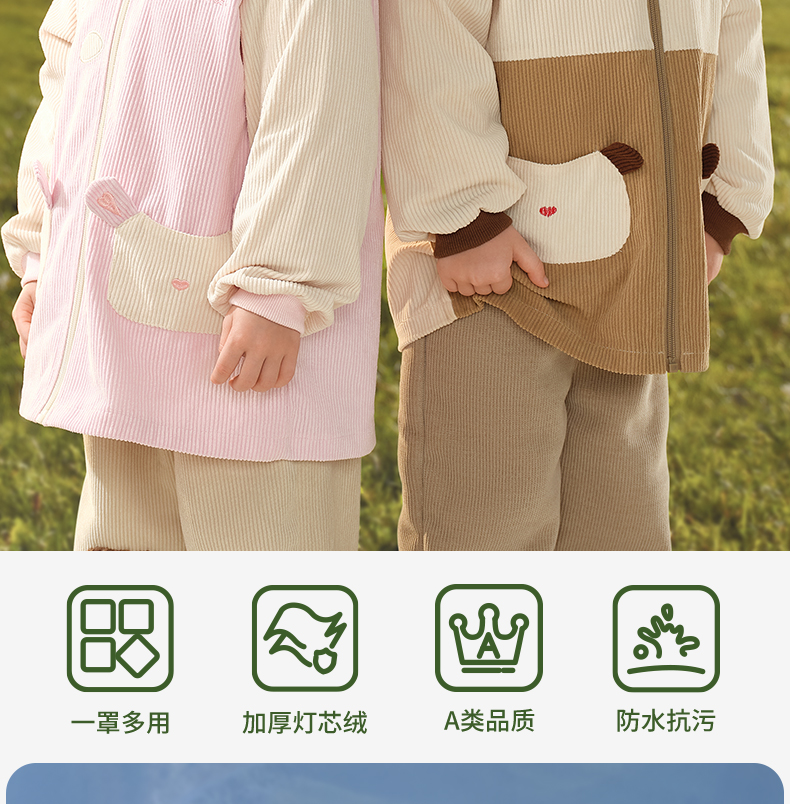 科巢儿童罩衣羽绒服护衣外穿男女宝宝防水防脏画画外套幼儿园秋冬