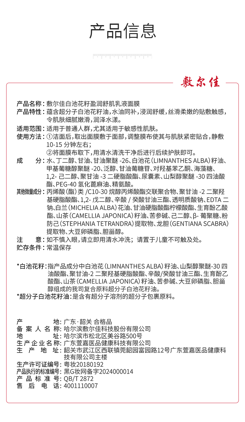 【3盒更优惠】敷尔佳白池花籽盈润舒肌乳液面膜 3盒