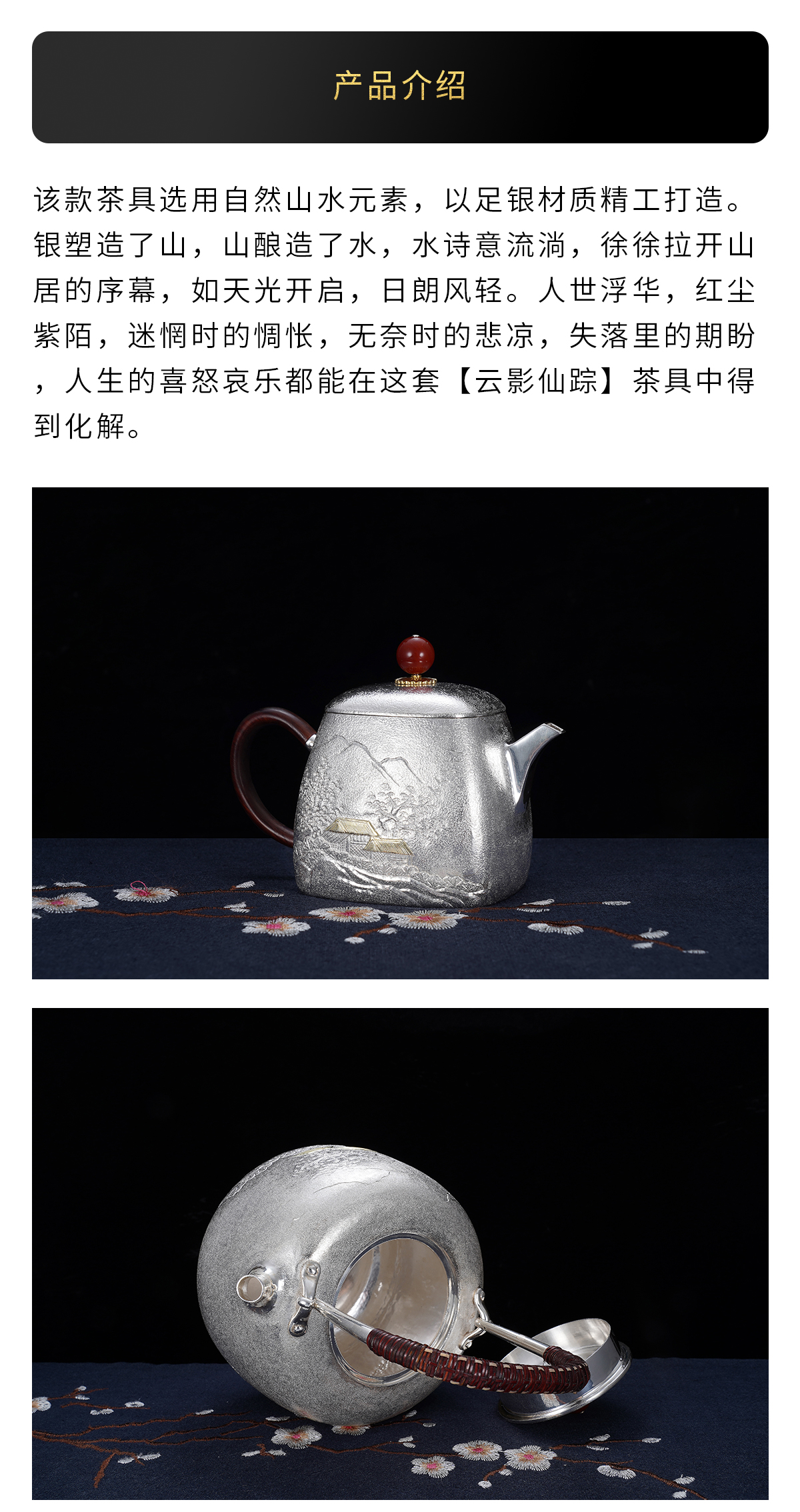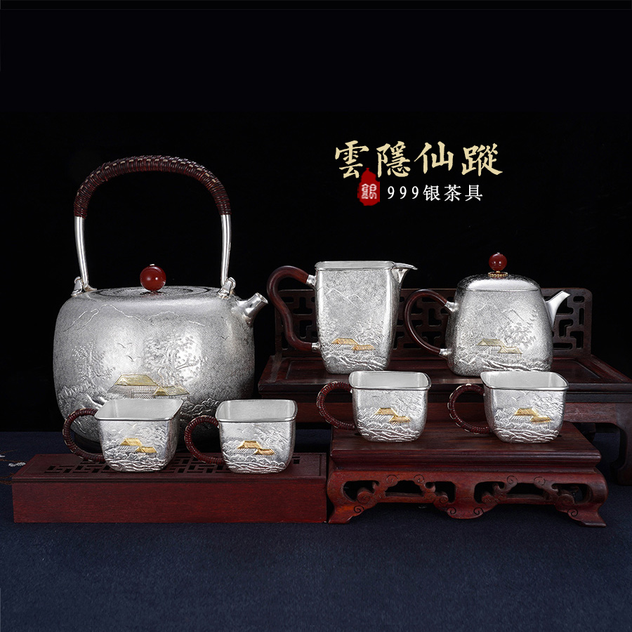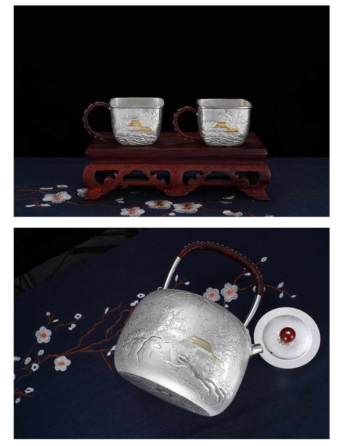 子佩集S999银【云影仙踪】嵌金提梁壶小茶壶公道杯摆件茶杯摆件茶具套装【ZJ011】【ZJ002】【ZJ003】【ZJ013】原创作品2311