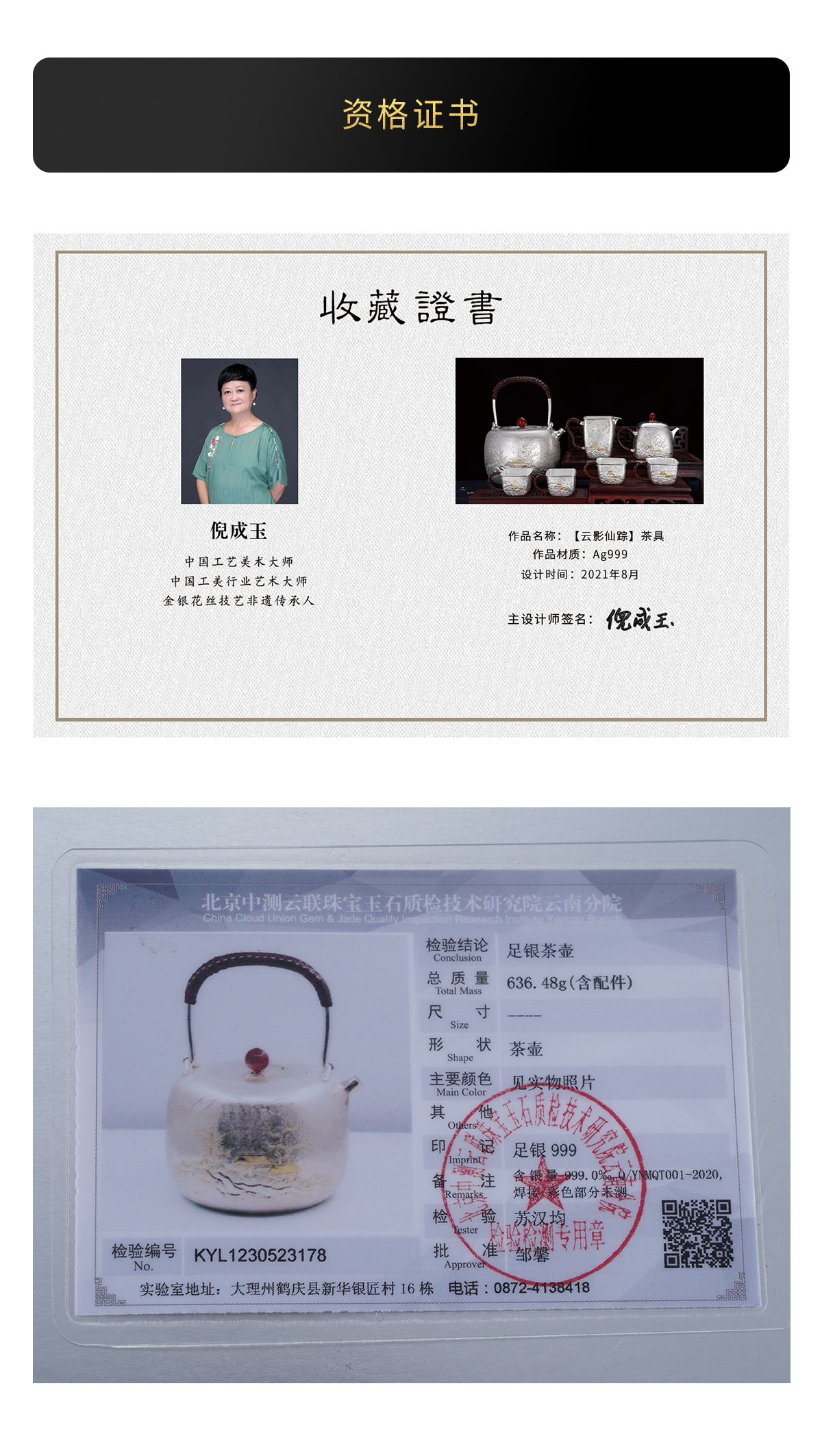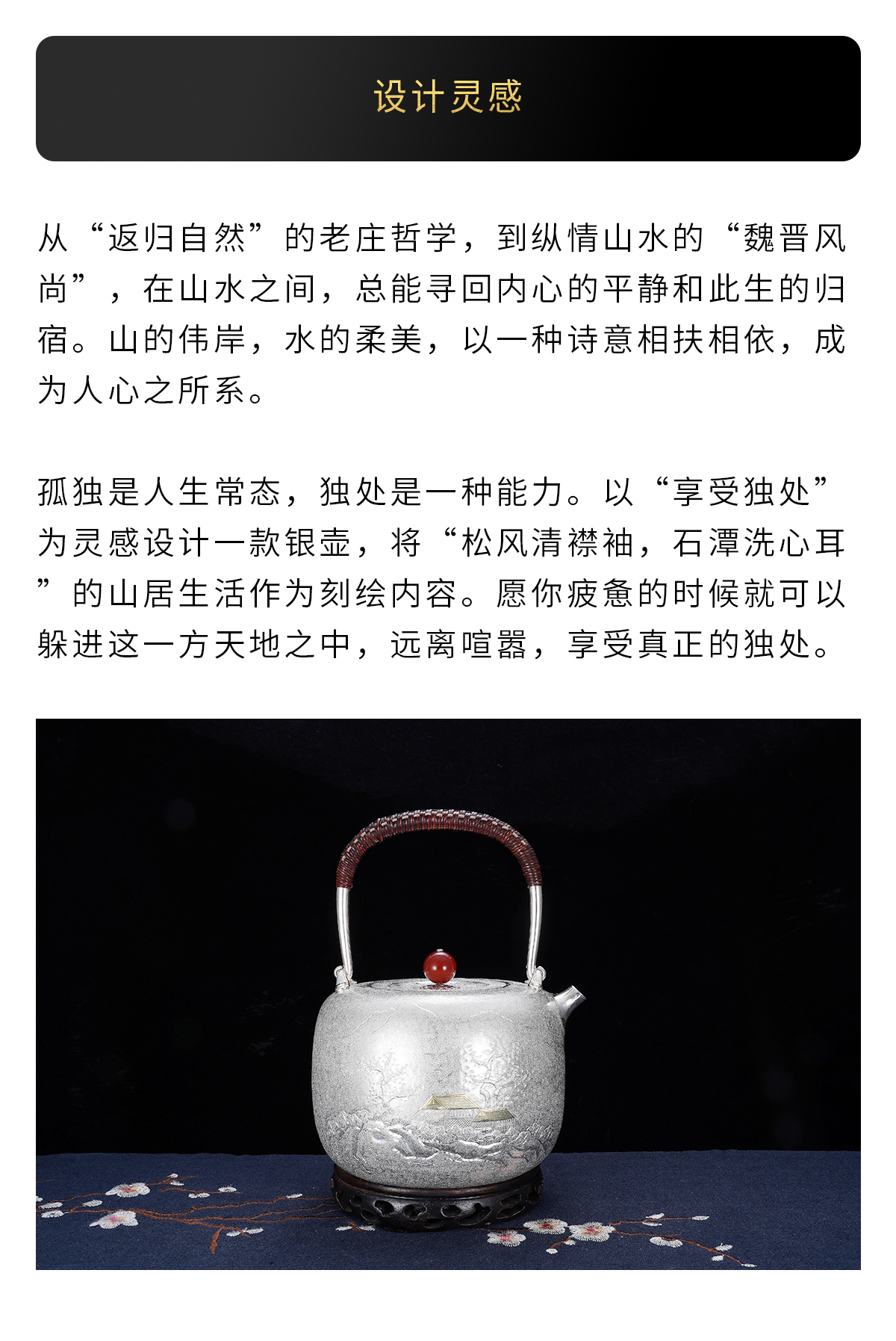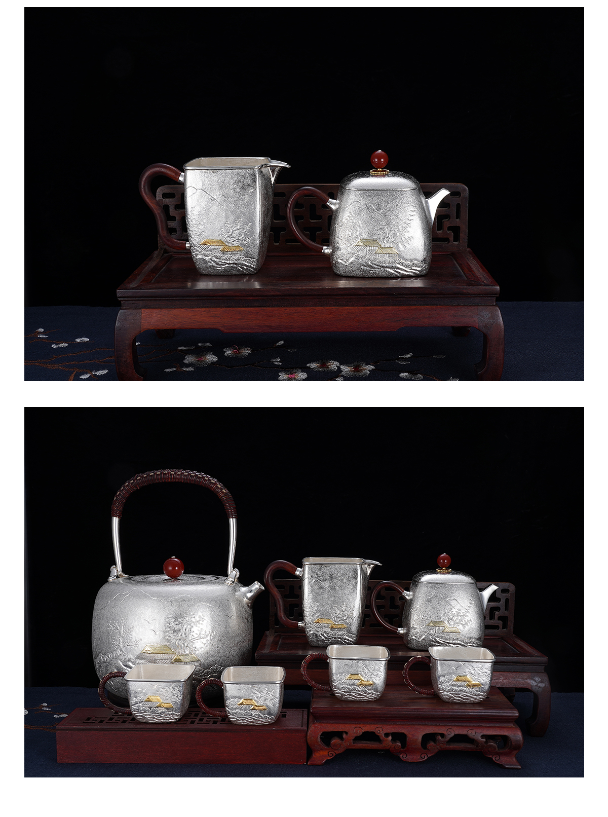 子佩集S999银【云影仙踪】嵌金提梁壶小茶壶公道杯摆件茶杯摆件茶具套装【ZJ011】【ZJ002】【ZJ003】【ZJ013】原创作品2311