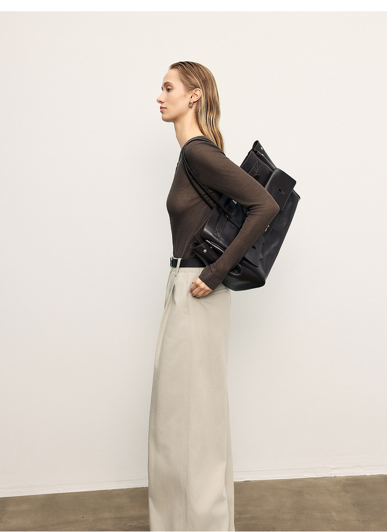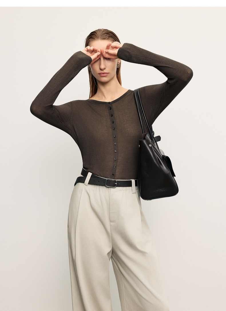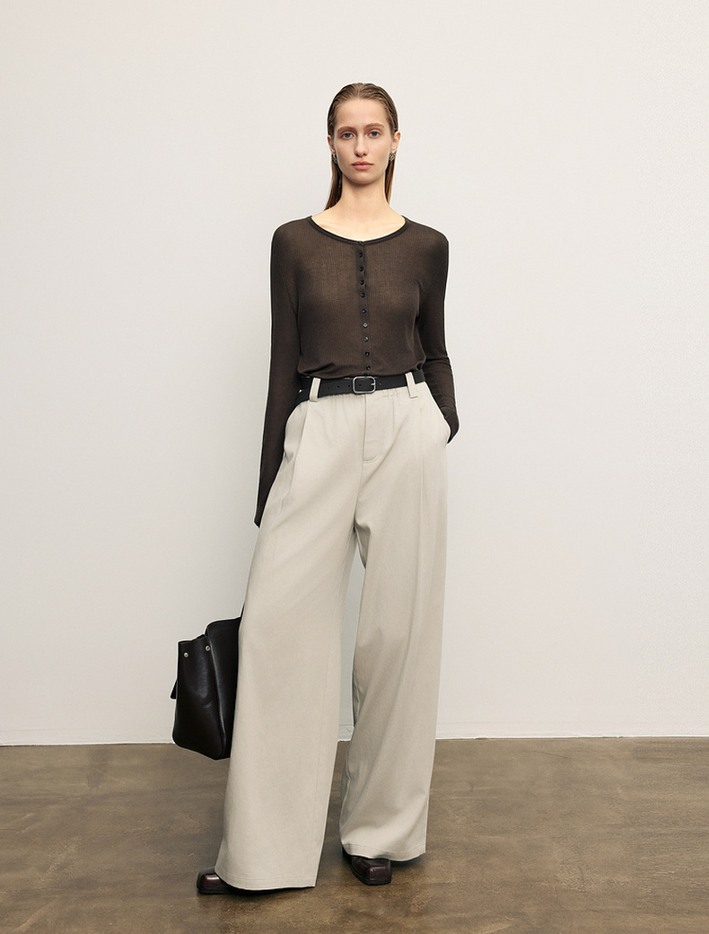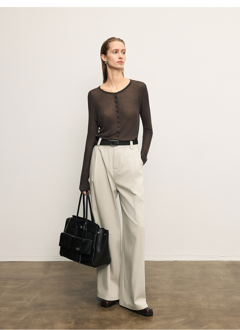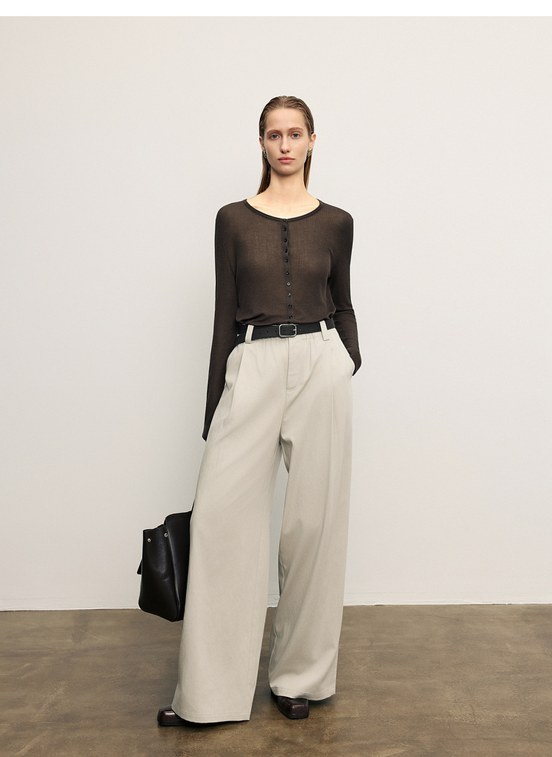 【积分换购不退货】【商场同款】诗凡黎灰色高腰直筒休闲裤2024夏新款长裤3F4350731