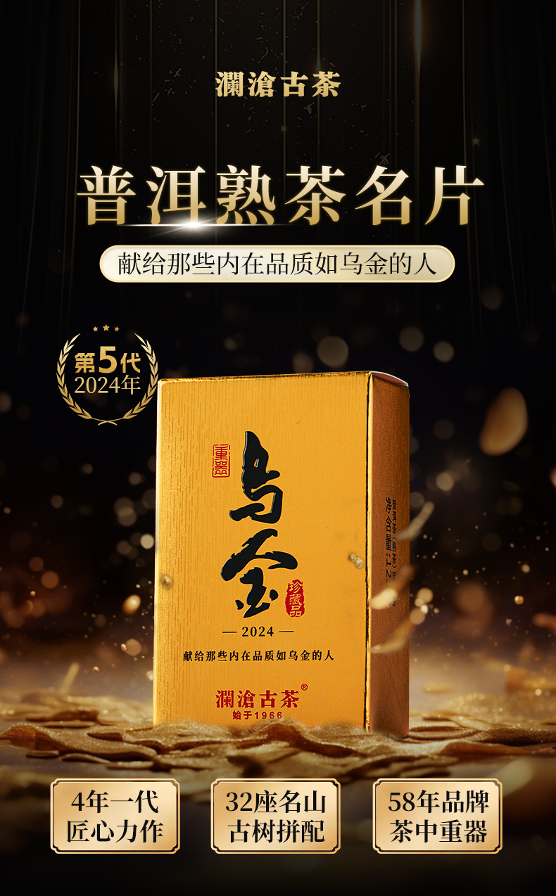 澜沧古茶2024年第5代乌金名山古树熟茶普洱茶砖茶125g