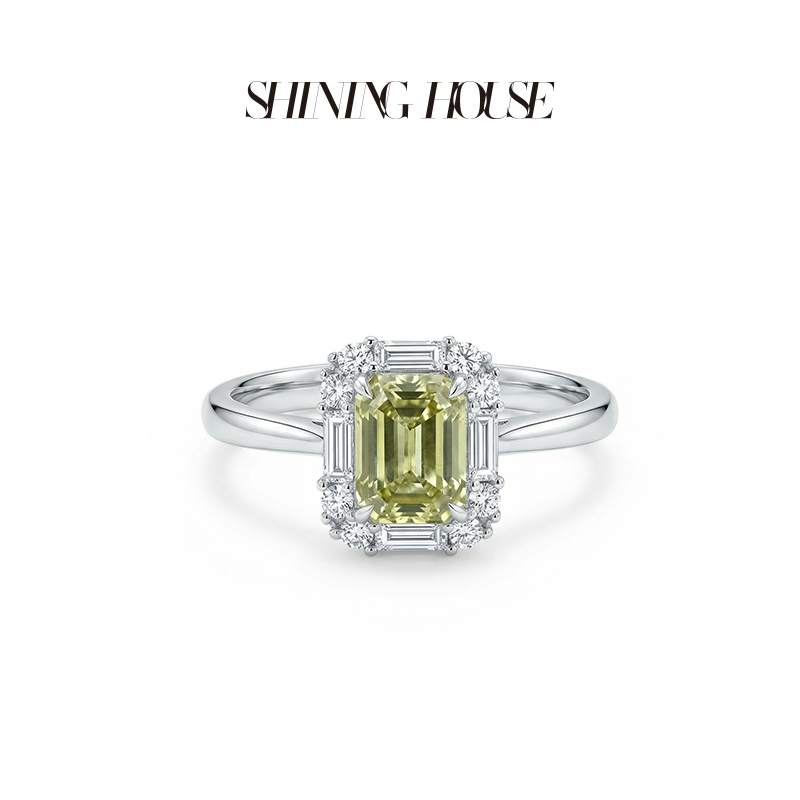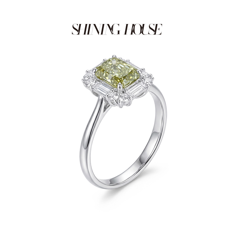 ShiningHouse[培育] 粉钻系列 18k金钻石戒指 垫形1克拉钻人工真钻人造钻石K金戒指时尚钻石戒指卓越匠心奢耀臻献【此商品不支持7天无理由退货退款】