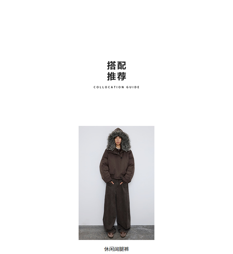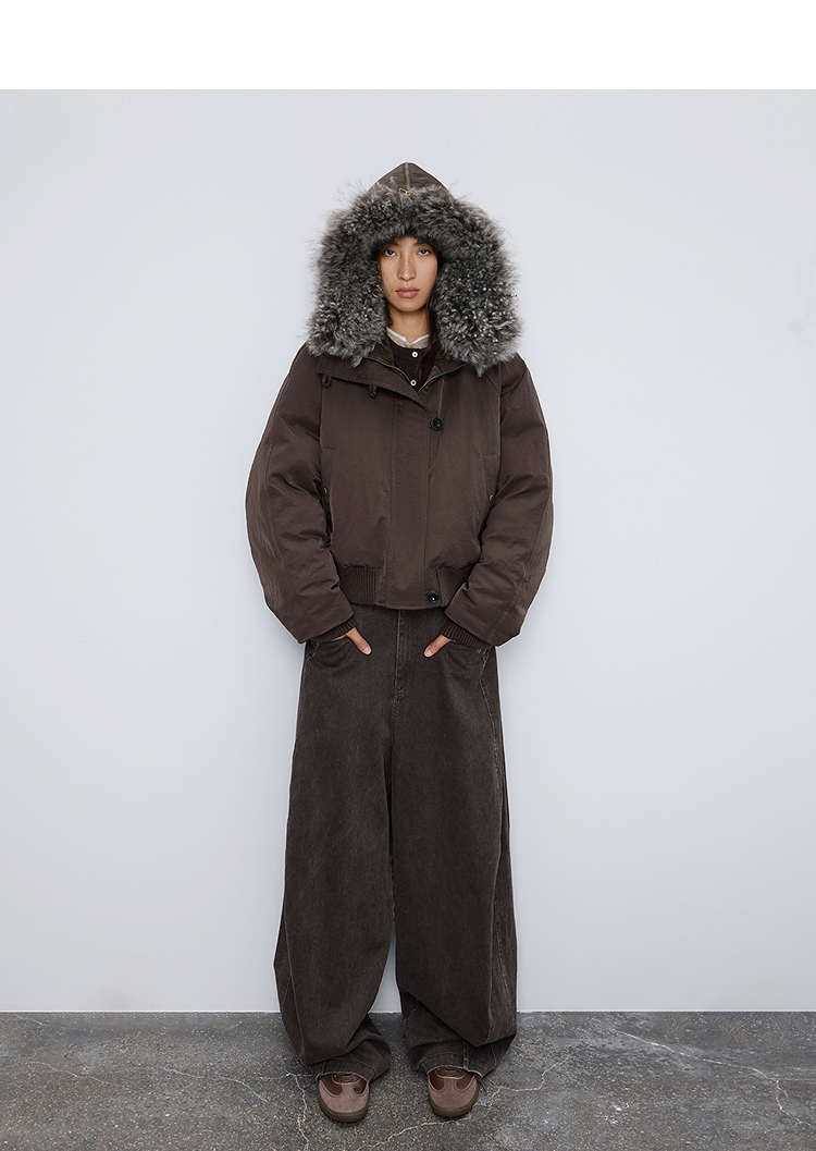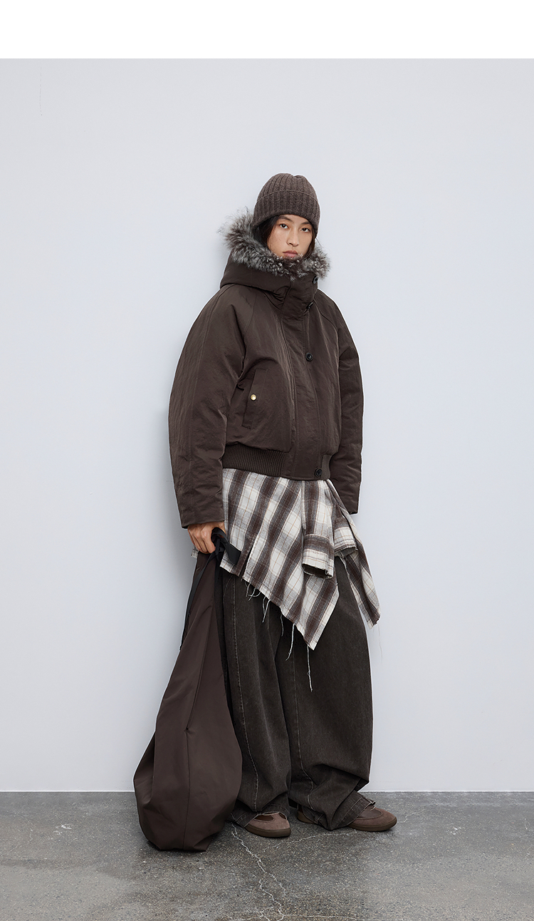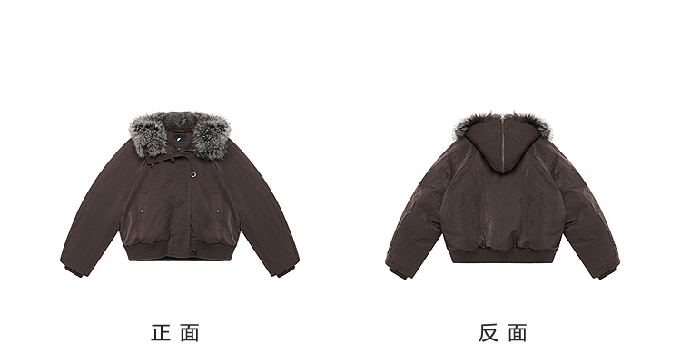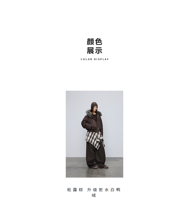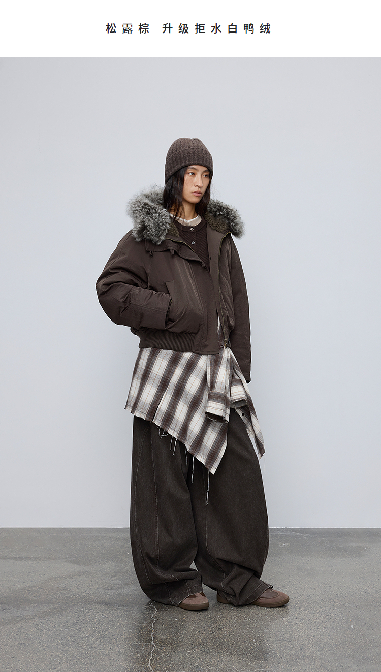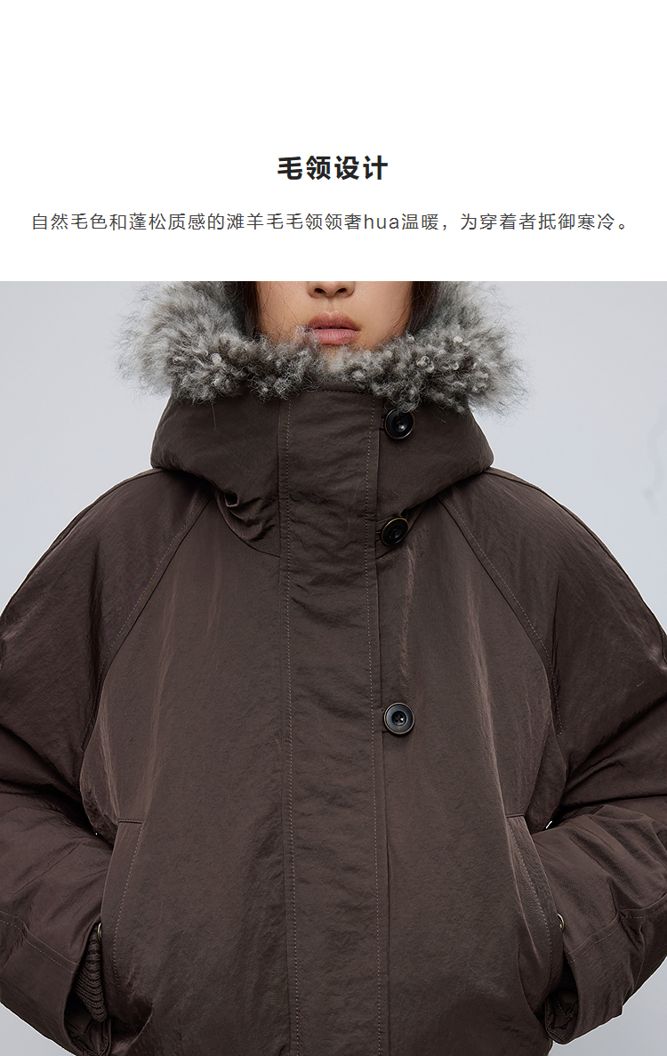半圆/D51111126/拼接羊毛领宽松短款羽绒服