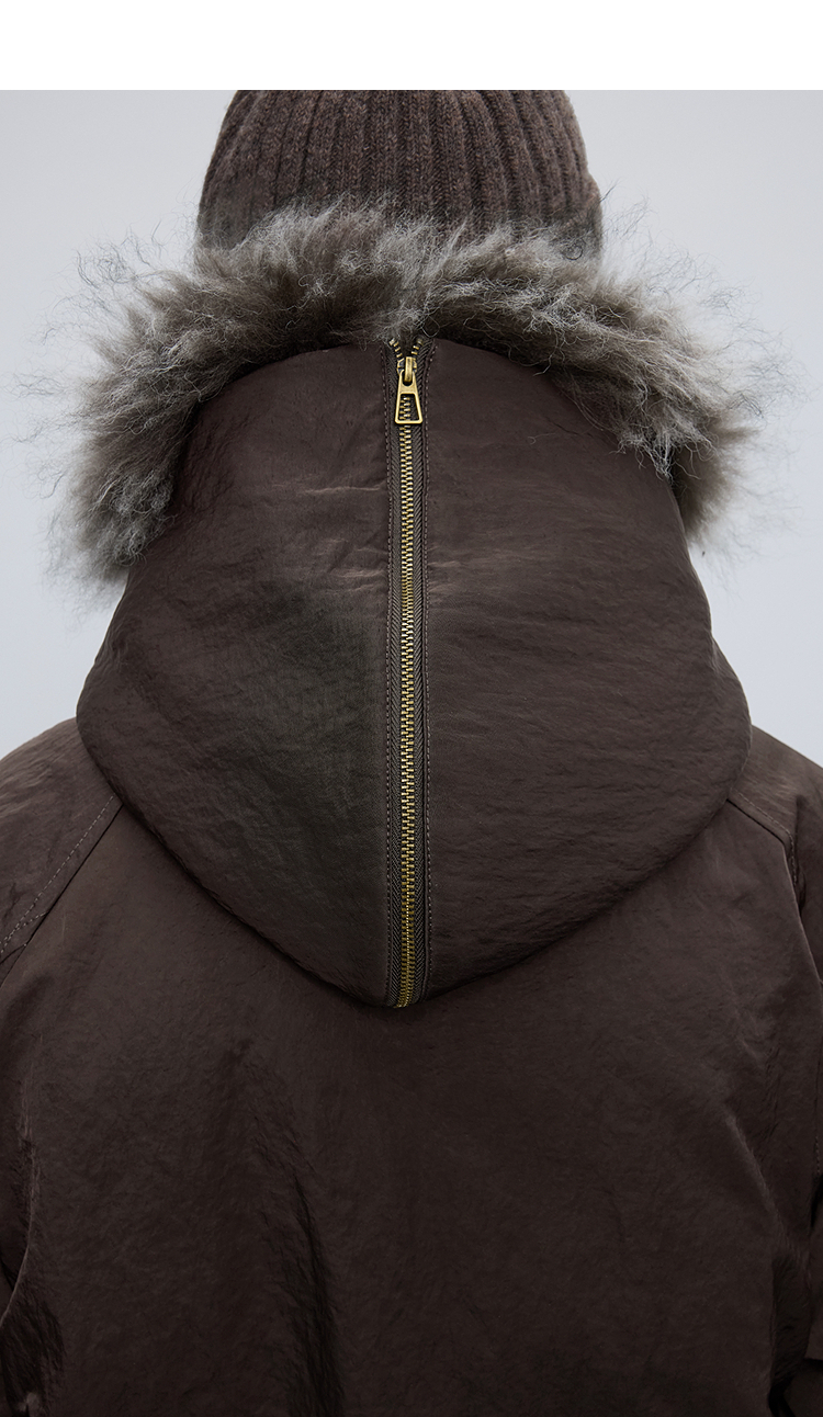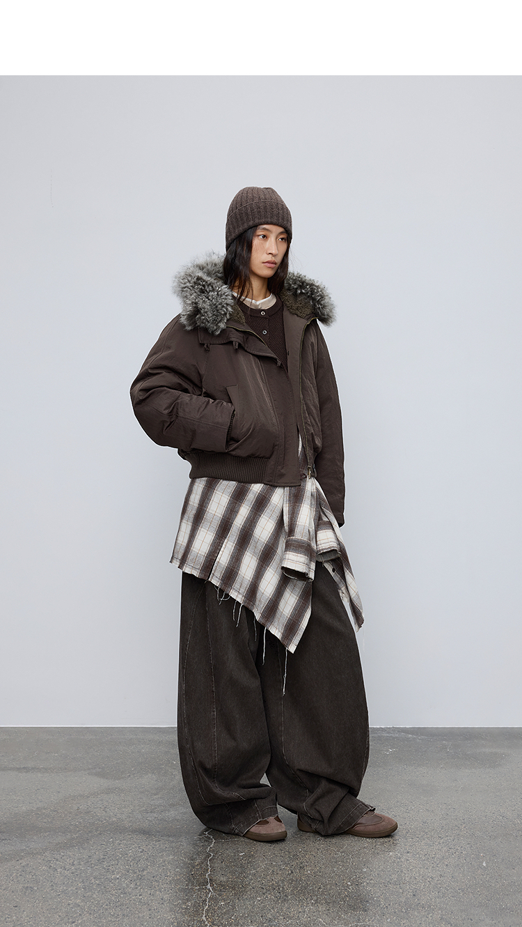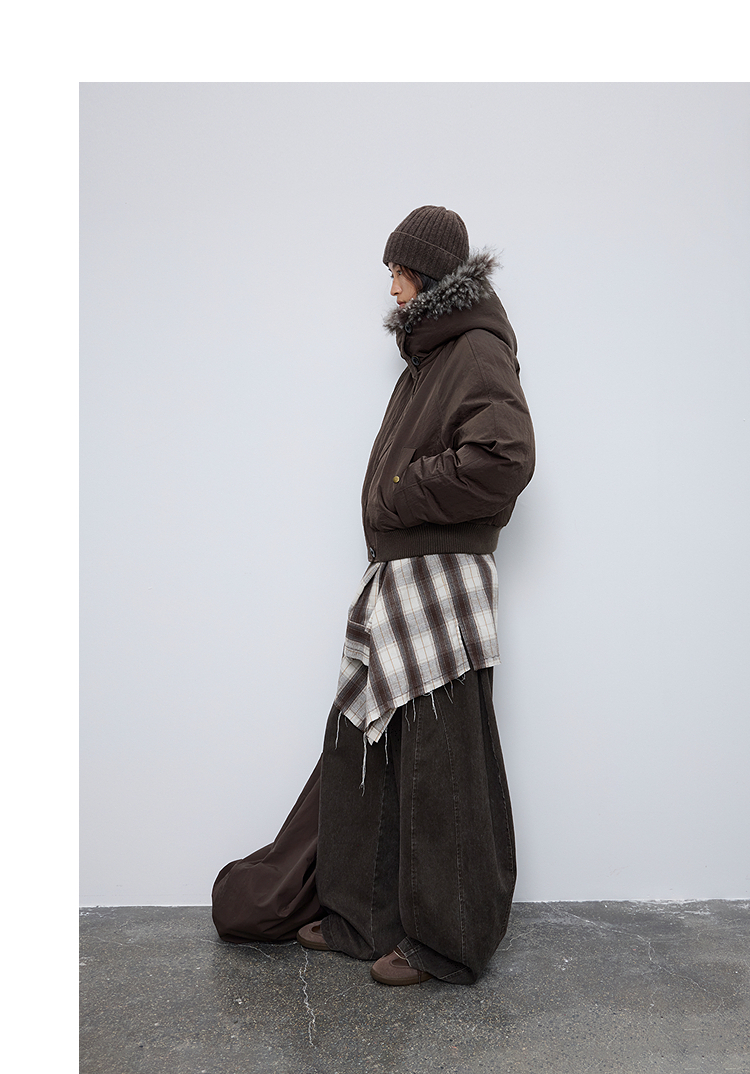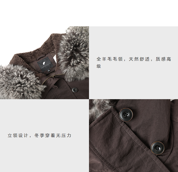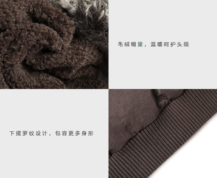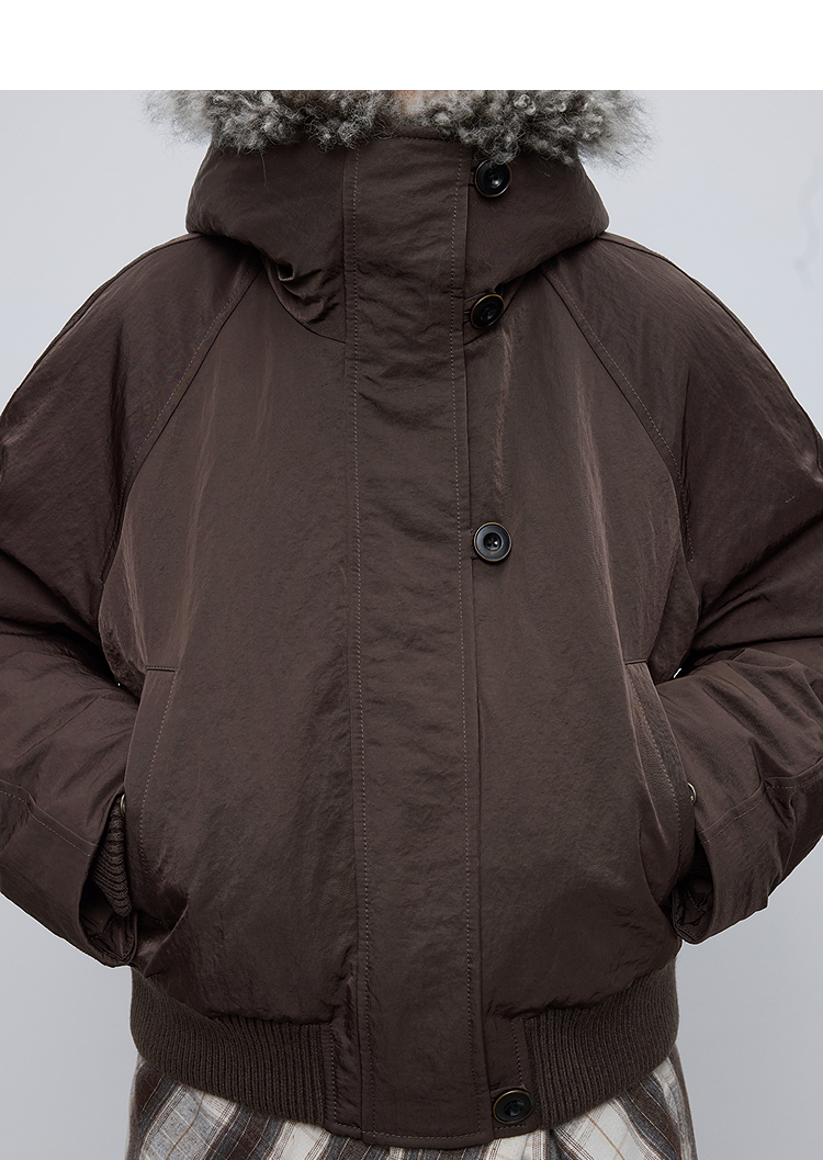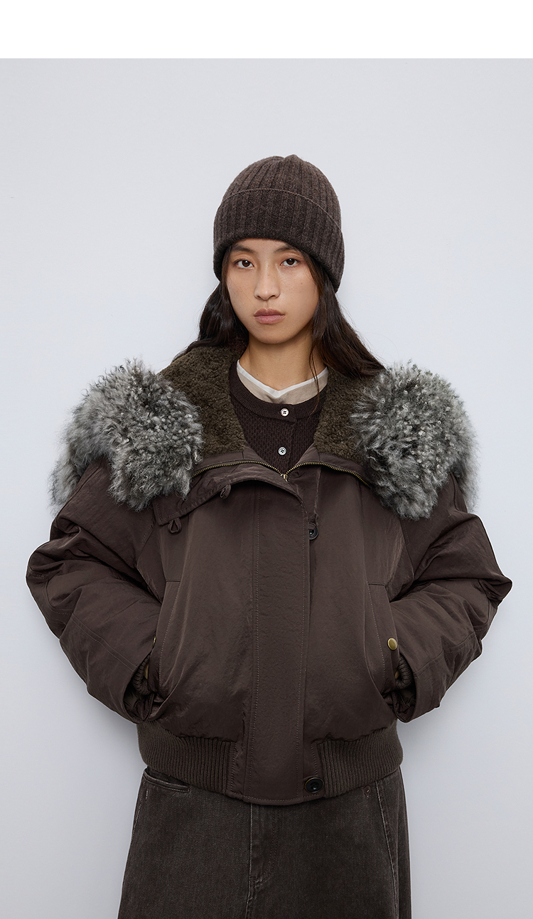 半圆/D51111126/拼接羊毛领宽松短款羽绒服
