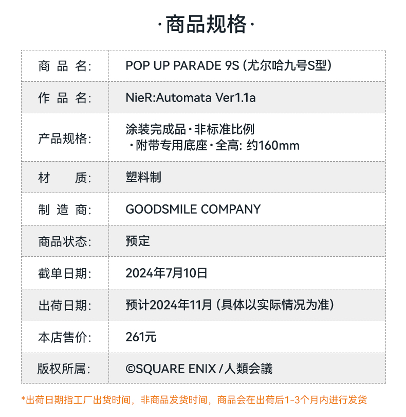 【GSC现货】POP UP PARADE 9S(尤尔哈九号S型)NieR:Automata Ver1.1a