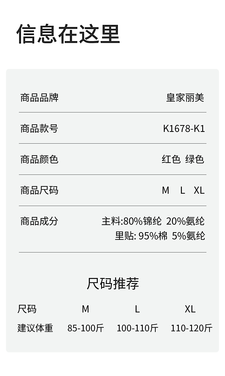 【45元5条,下单拍5】皇家丽美女士内裤一片式柔软棉底裆透气三角内裤K1678-K1
