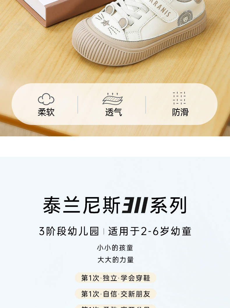 泰兰尼斯童鞋秋季新款311儿童幼儿园室内鞋男童入园防踢女童板鞋 T02X4C4775