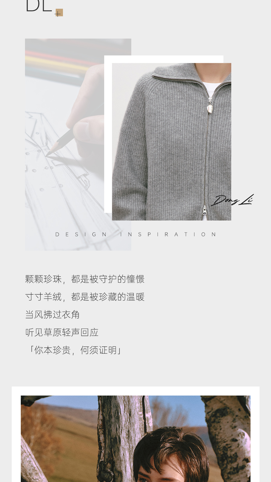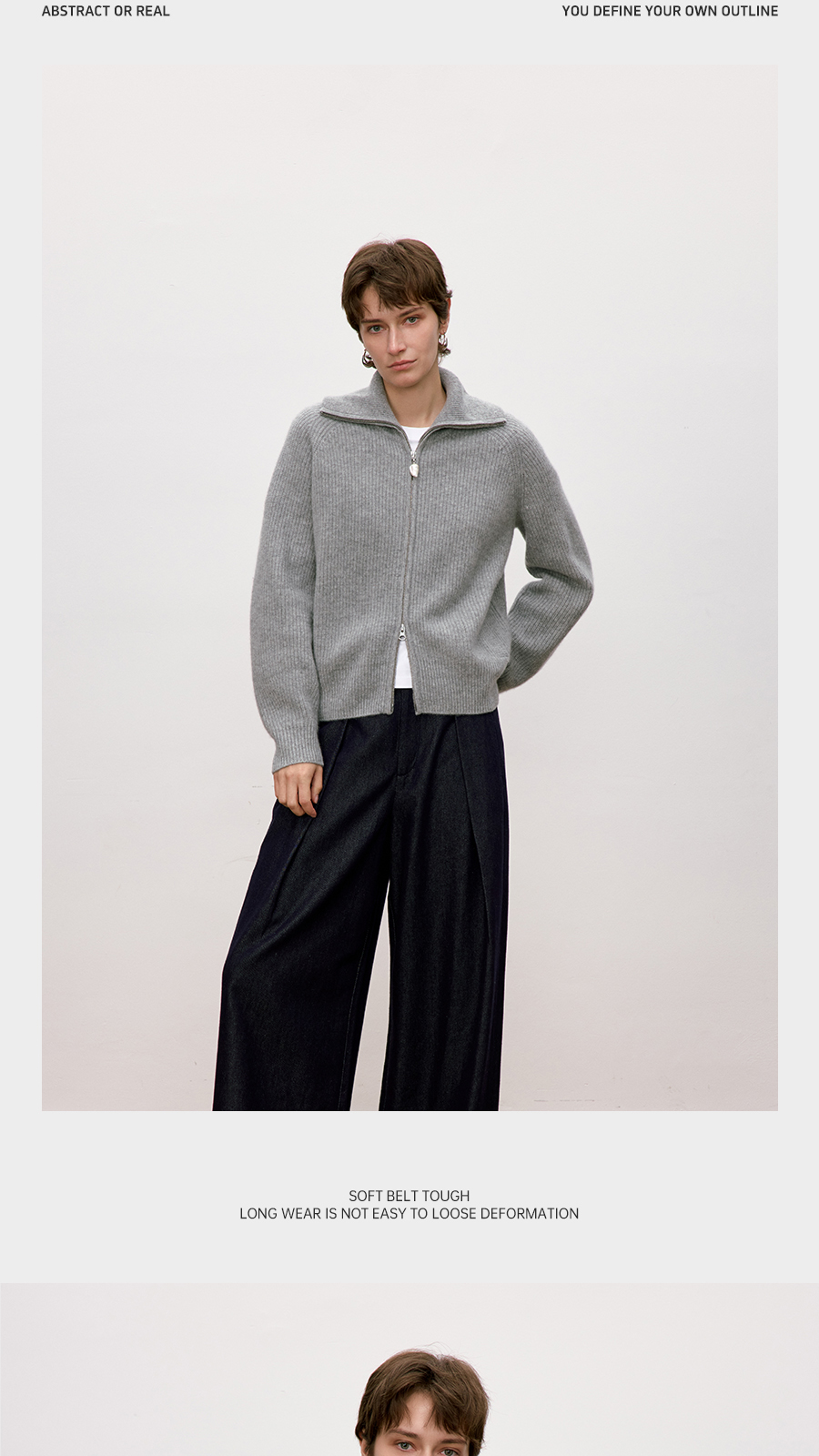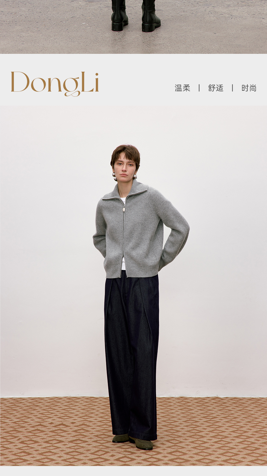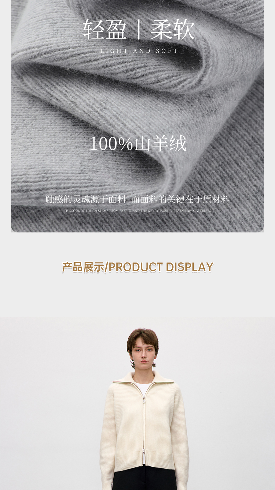 东黎 • 你本珍贵 瑕珠 山羊绒女士秋季强缩绒拉链开衫 5438
