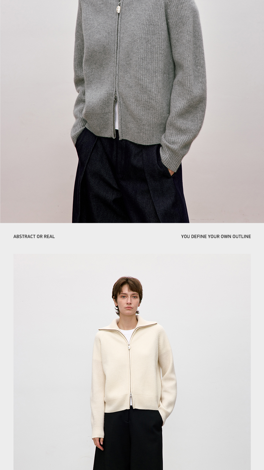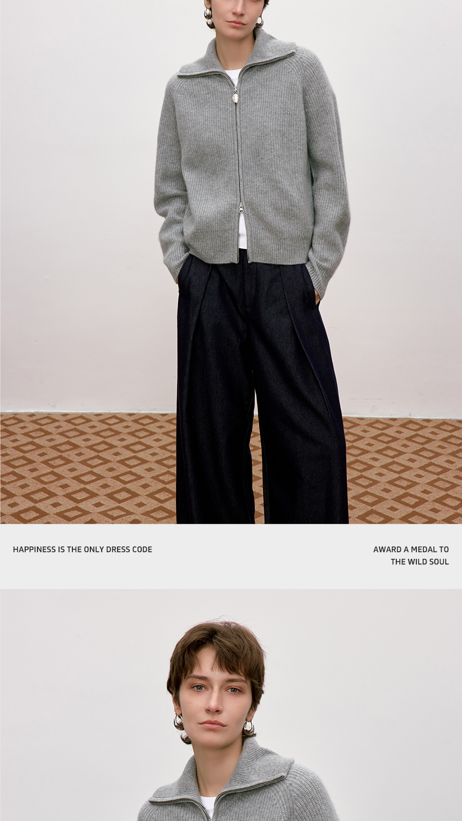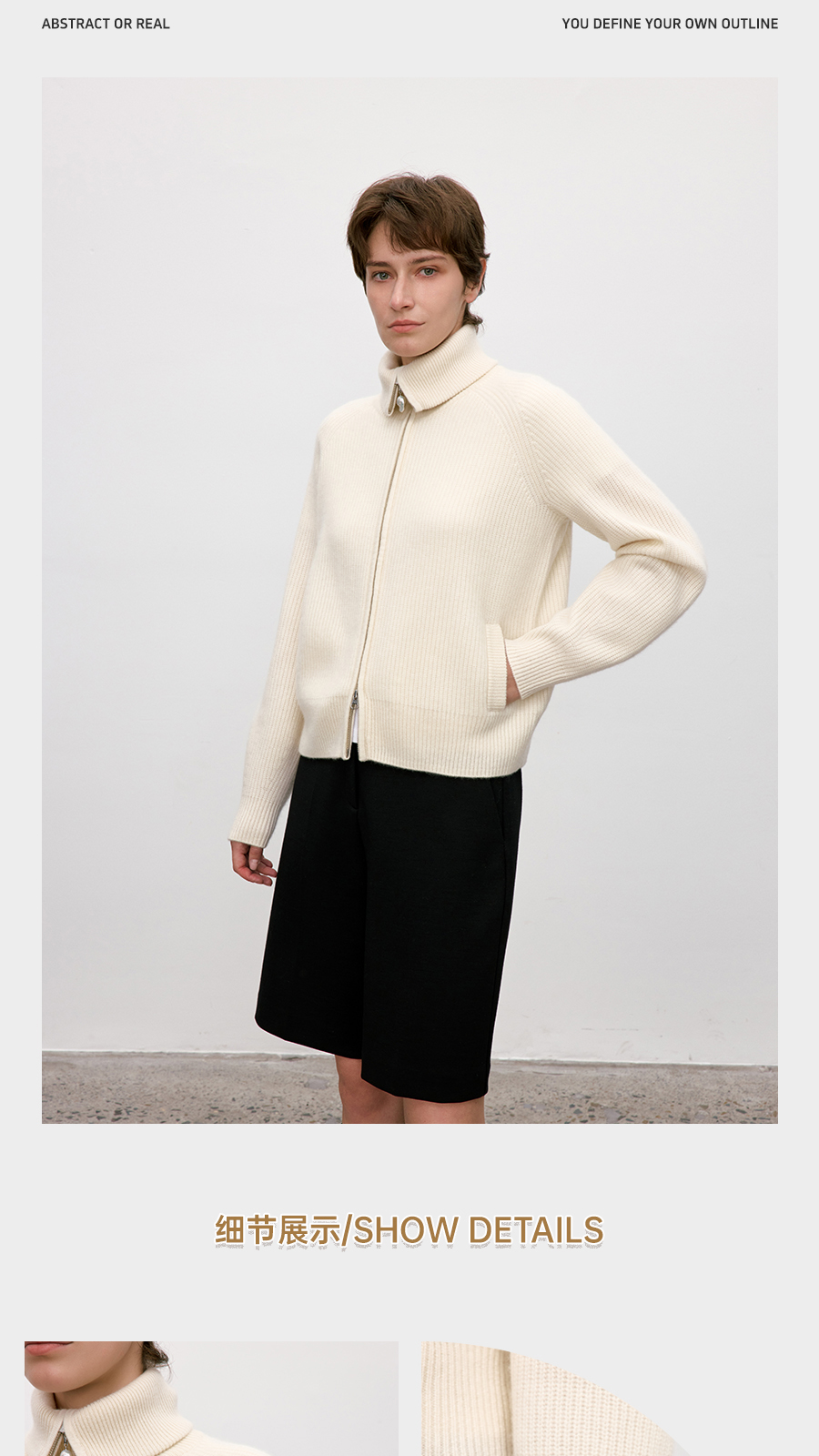 东黎 • 你本珍贵 瑕珠 山羊绒女士秋季强缩绒拉链开衫 5438
