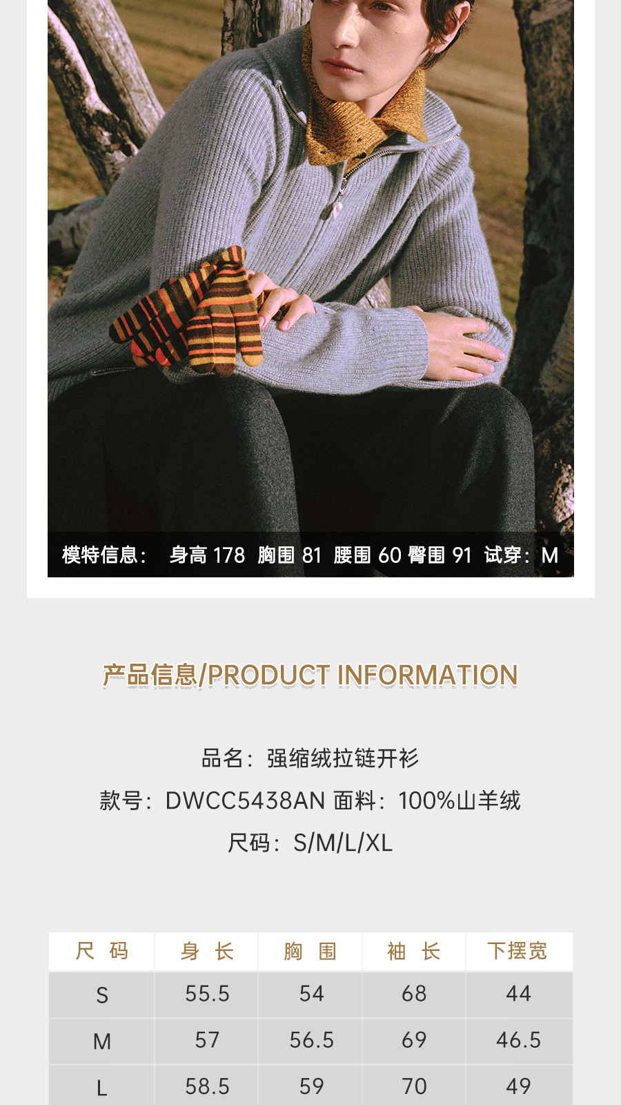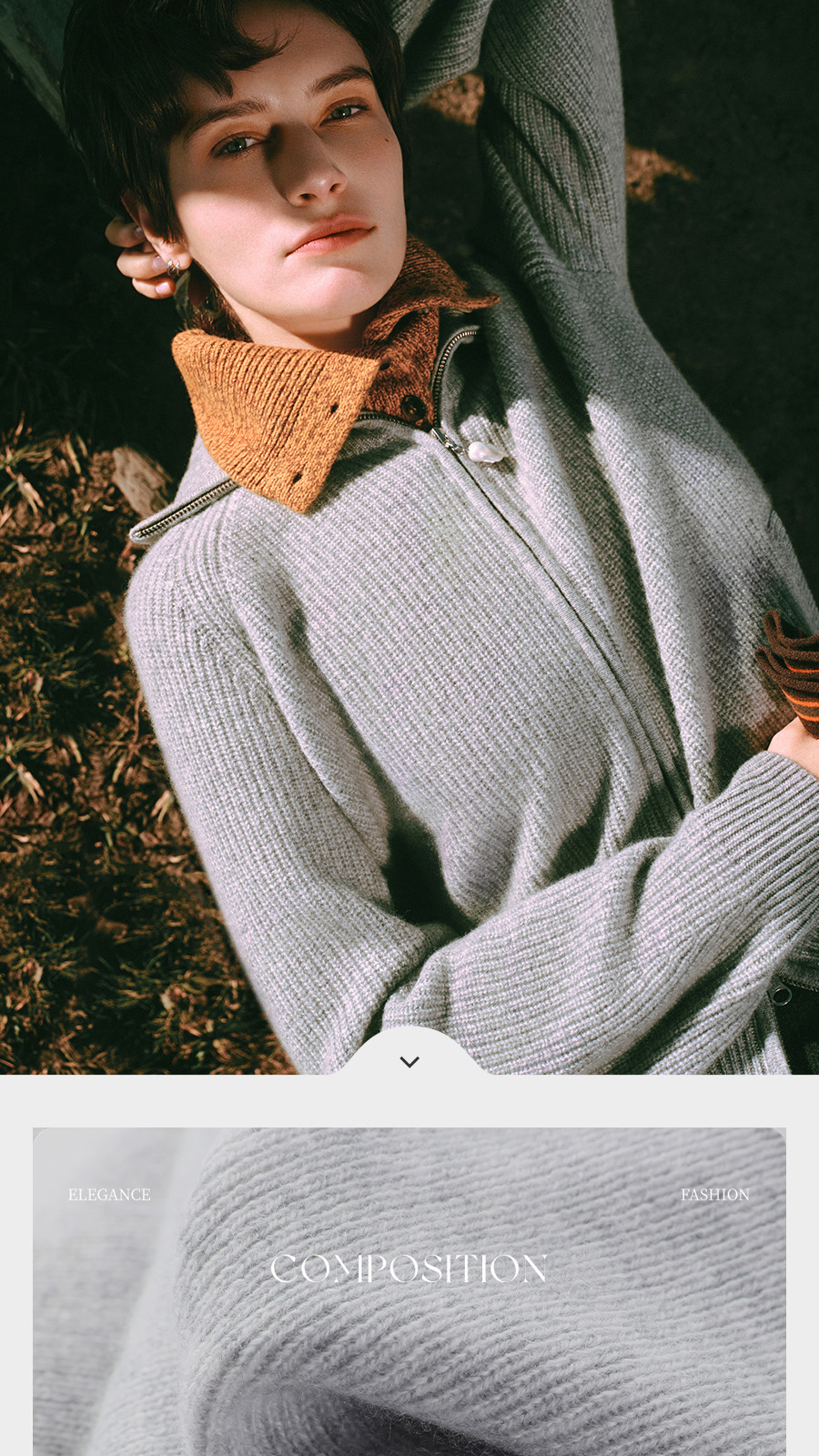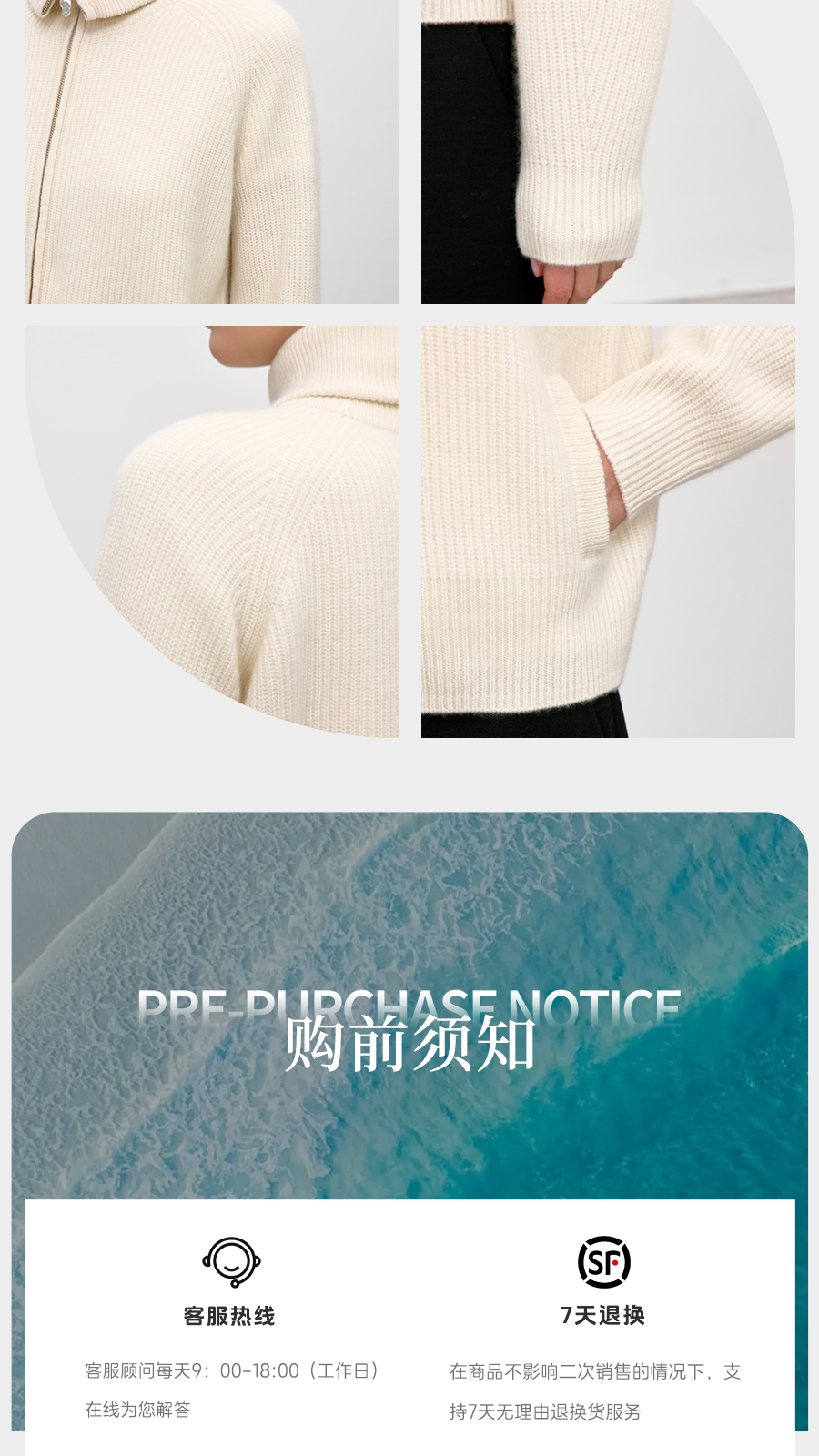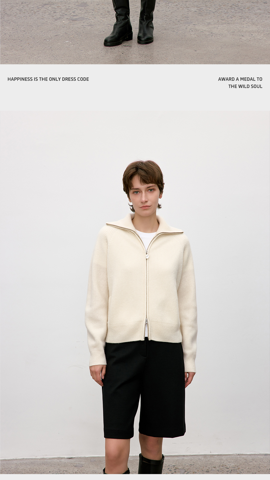 东黎 • 你本珍贵 瑕珠 山羊绒女士秋季强缩绒拉链开衫 5438