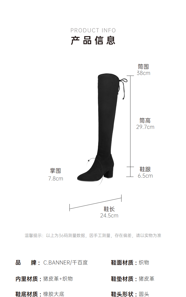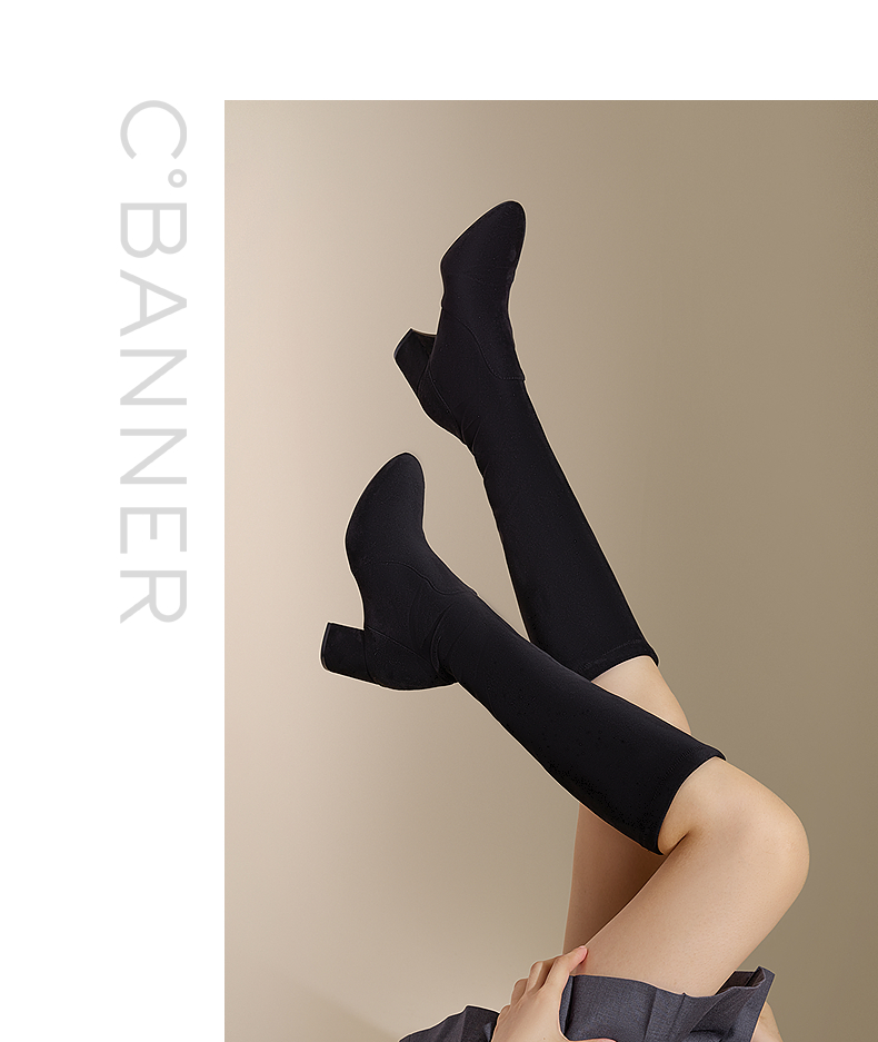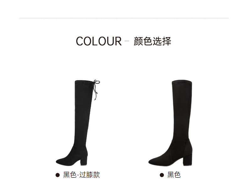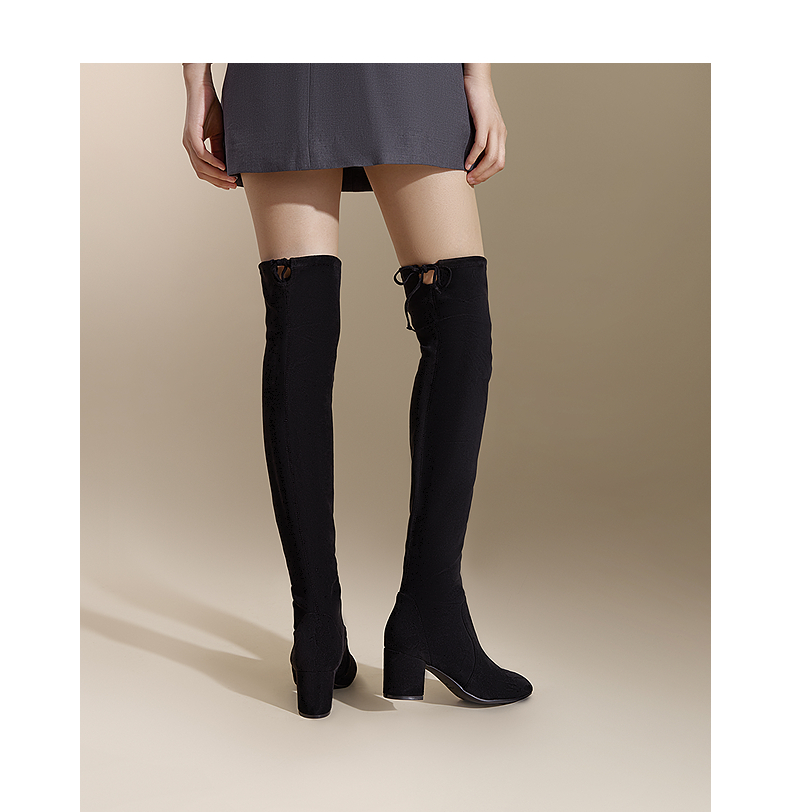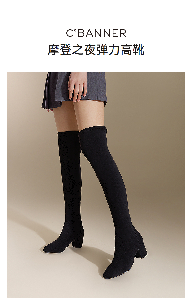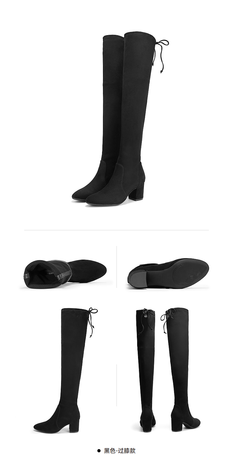 千百度粗高跟弹力靴显瘦袜靴女冬季过膝靴瘦瘦靴高筒长靴A24542851
