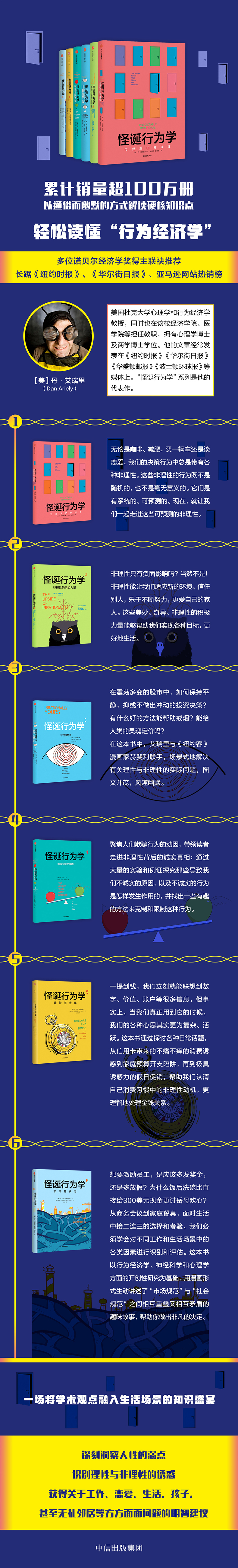 美国杜克大学心理学和行为经济学,同时也在该校经济学院、医学院等担任教职,获得过心理学博士及商学博士学位。他的文章经常发表在《纽约时报》《华尔街日报》《华盛顿邮报》《波士顿环球报》等知名媒体上。 他写作了一系列畅销书,包括《怪诞行为学:可预测的非理性》《怪诞行为学2:非理性的积极力量》《怪诞行为学3:非理性的你》《怪诞行为学4:诚实的真相》等。