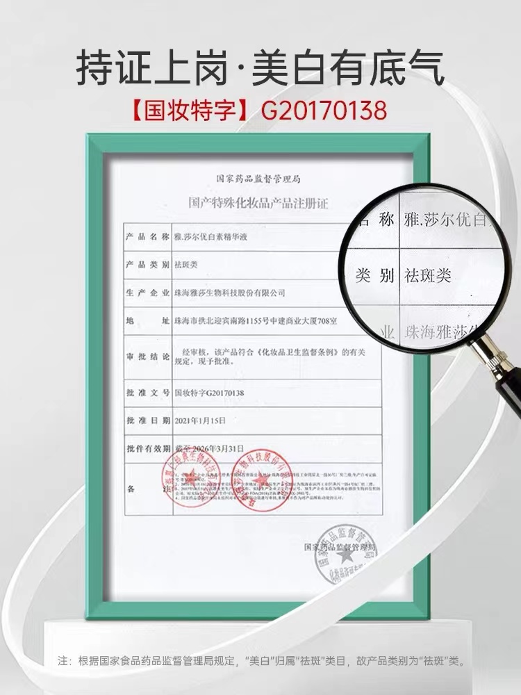 【作 用】还原黑色素,抑制黑色素生成,从而达到祛斑和美白的效果。