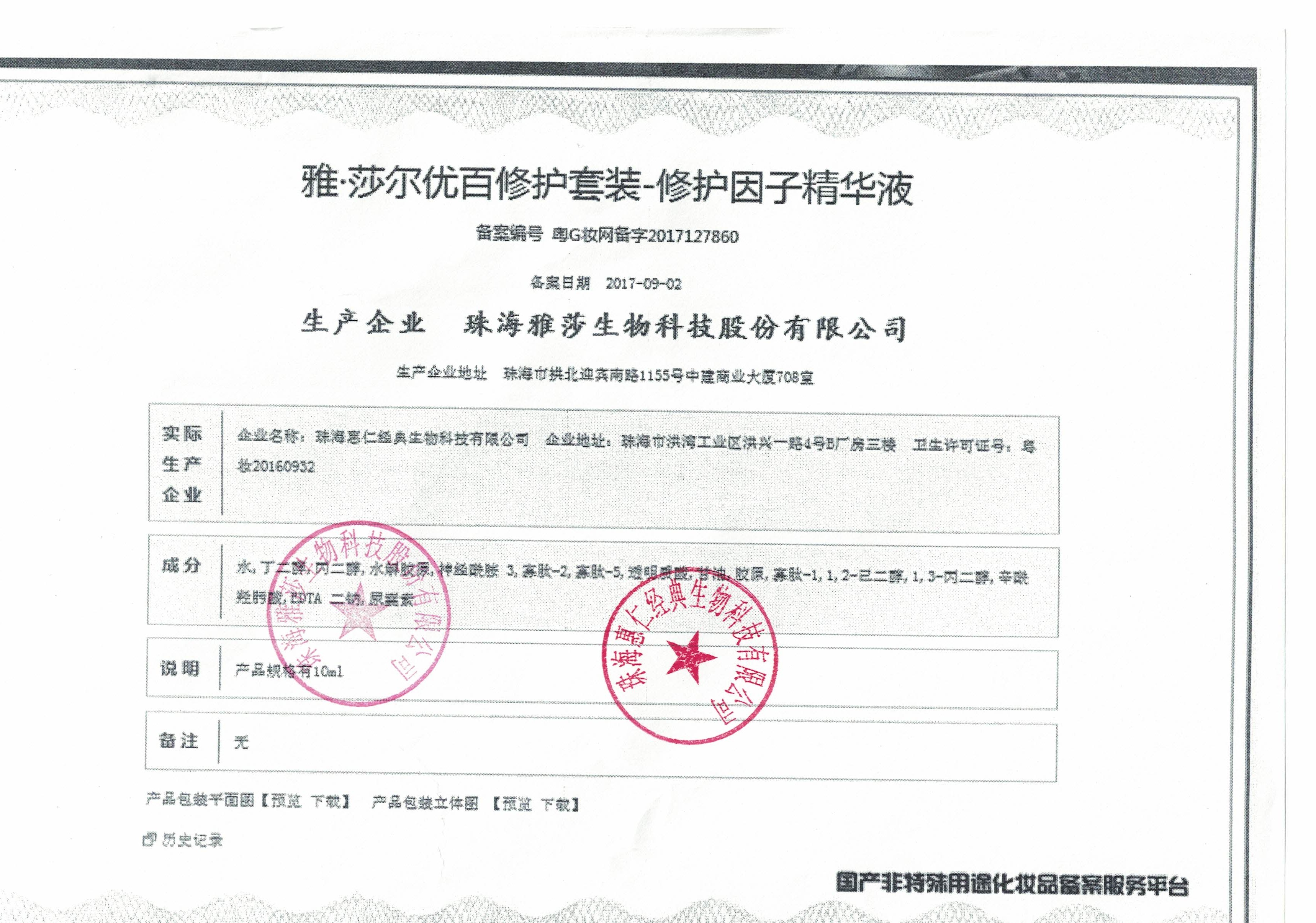 【作 用】修护皮肤,保湿补水,淡化细纹,延缓皮肤衰老。