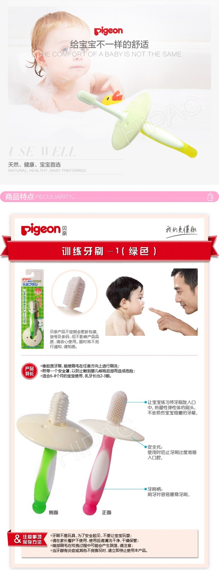 【一般贸易】贝亲 儿童训练-2阶段牙刷(8-12月)10518 软毛牙刷