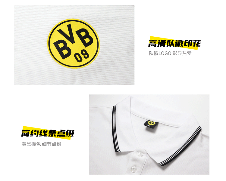 【官方正版】多特蒙德足球俱乐部|夏季新款白色POLO短袖运动休闲T恤