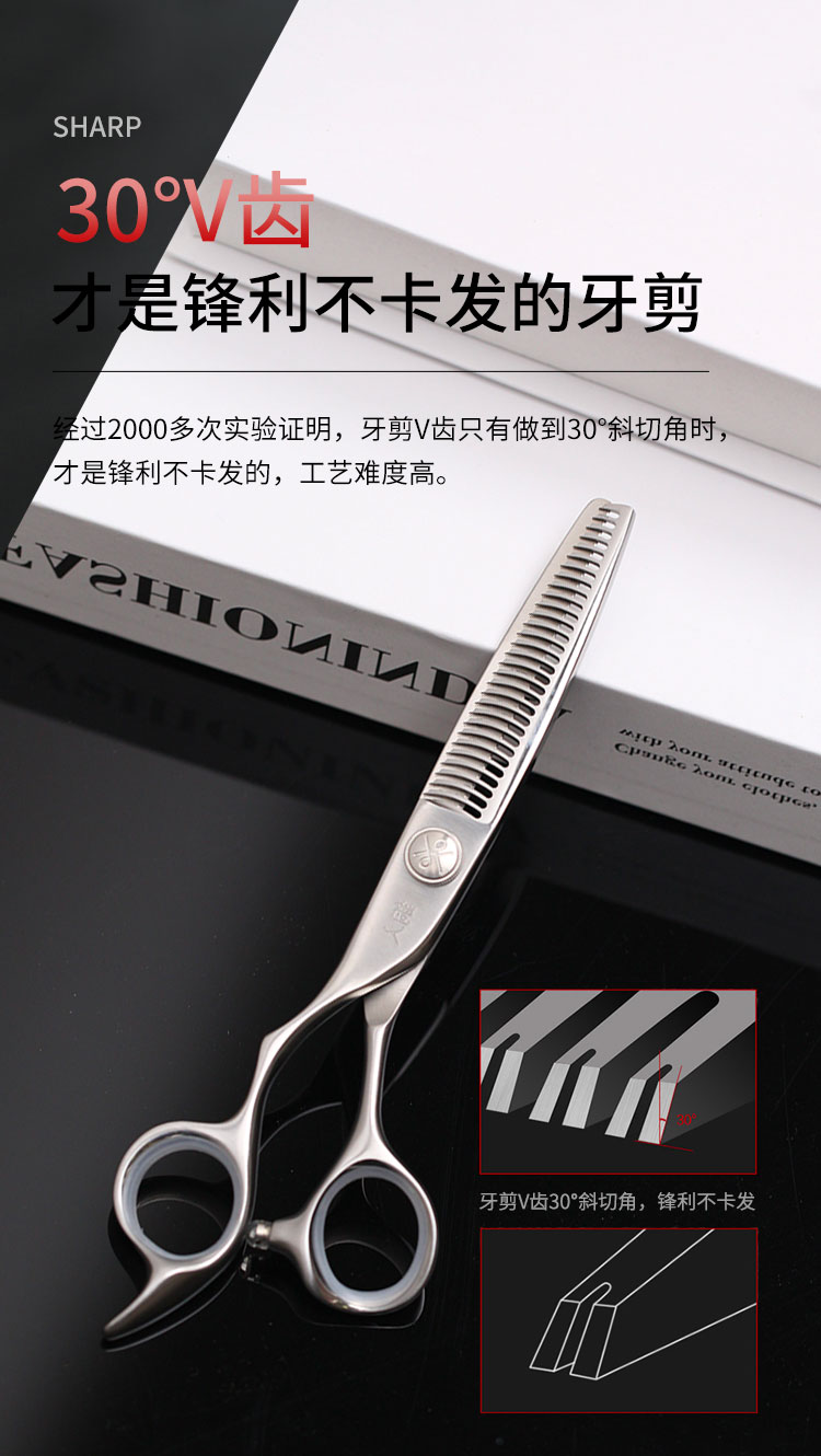 ZEBRA斑马牙剪Z69 去发量40%-50%男发逆刃牙剪 鹿角齿宽齿型设计适用于男发修剪,剪切有力效果自然。