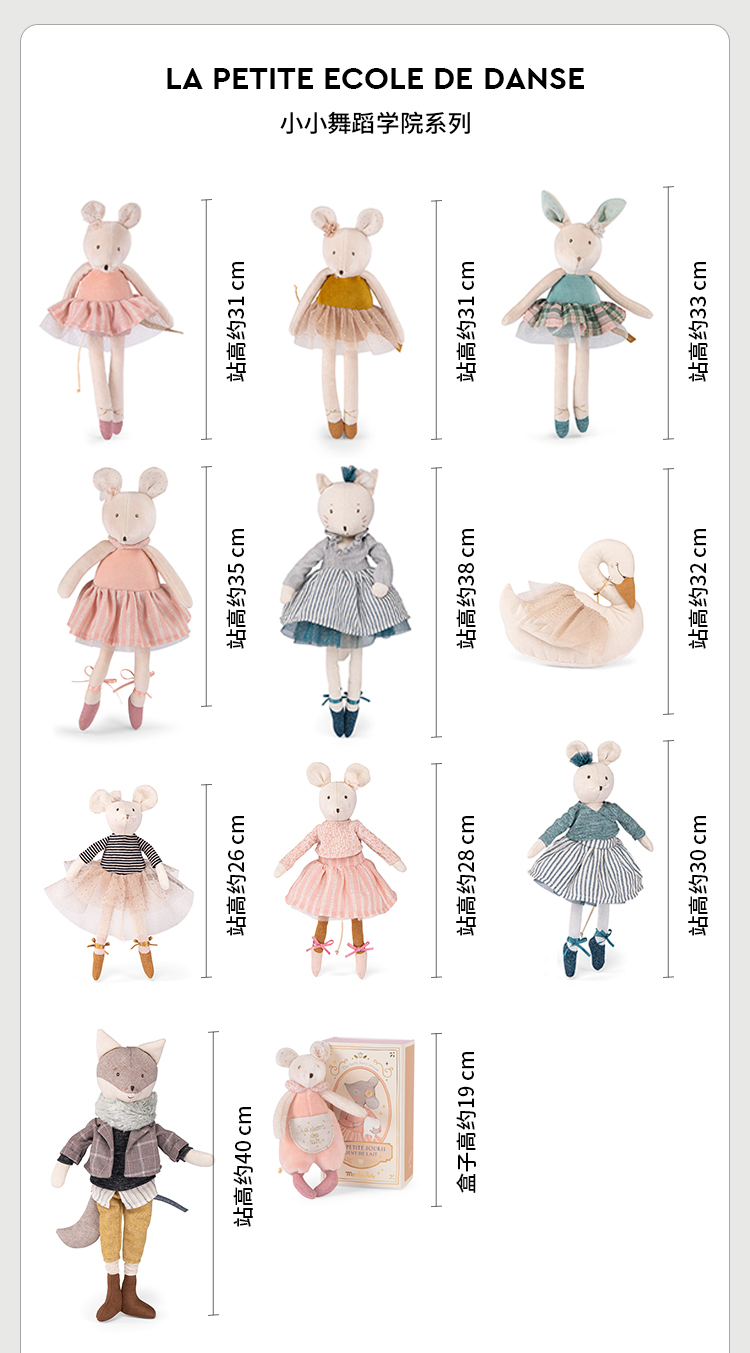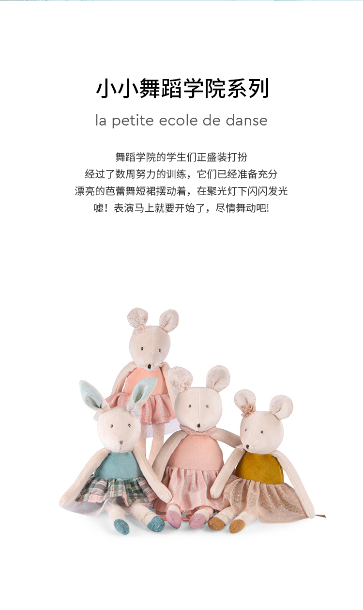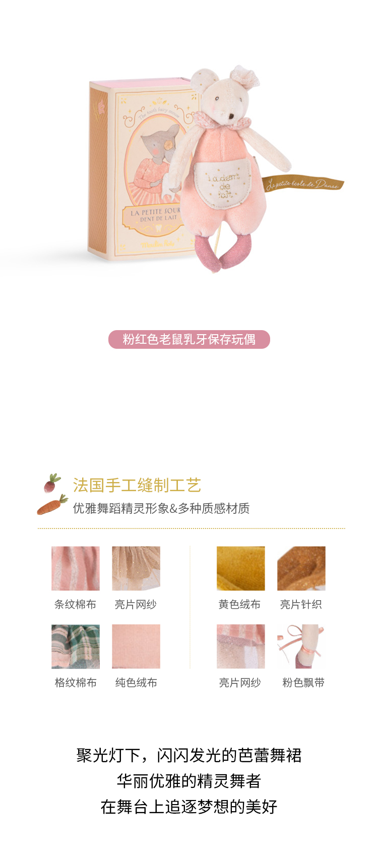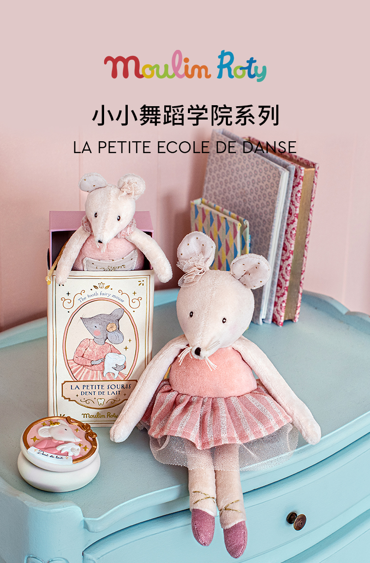 Moulin Roty 粉色老鼠玩偶 法式玩偶 适合年龄0岁+ 小小舞蹈学院系列 667028