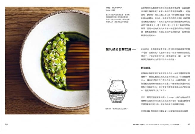 愛吃愛玩如我,一直追蹤著NOMA這家位在丹麥的餐廳,2018年這本書的英文版一上市,便迫不急待在亞馬遜訂購,收到的時候真心折服。Rene以餐廳主廚的角色,重新梳理各地的發酵方法,在實驗室裡重現,用精確並且易懂的方式,幫助大家理解發酵這門既古老又神秘的學問,書中更是大方分享了餐廳的食譜作為應用的範例,對當時的我來說,心中的想法和疑問能夠得到印證與解答,無疑是一份*棒的禮物。
