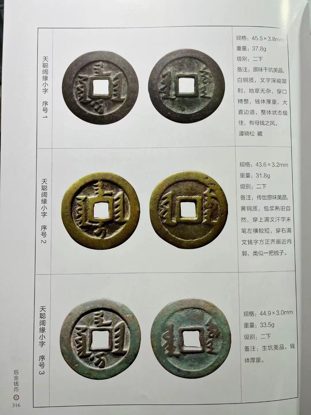 历经5年,拙著《后金钱币》一书付梓在即,终于和广大泉友见面了,它是目前国内唯一一部全方面、系统性、研究性、鉴赏性的专题著作。全书覆盖了满、汉文天命小平钱,满文天聪当十大钱40余种版式及1300多张图片,大部分藏品图片是由国内外后金钱币收藏家、研究学者及藏友提供,其中有不少藏品系首次披露,弥足珍贵。