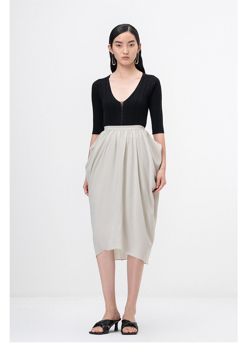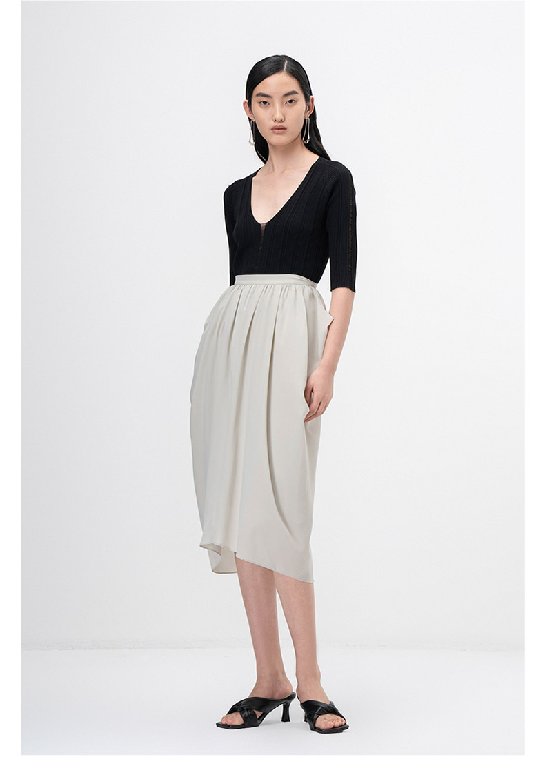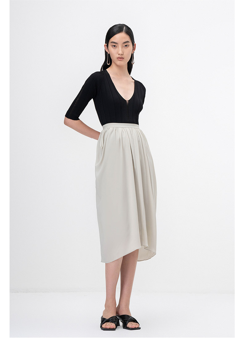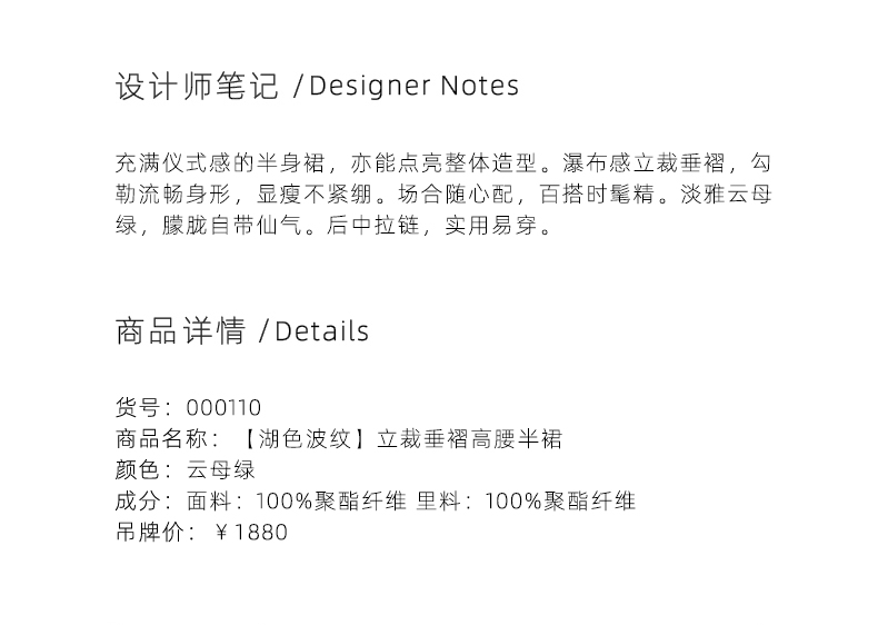 【湖色波纹】云母绿立裁垂褶高腰半裙/000110