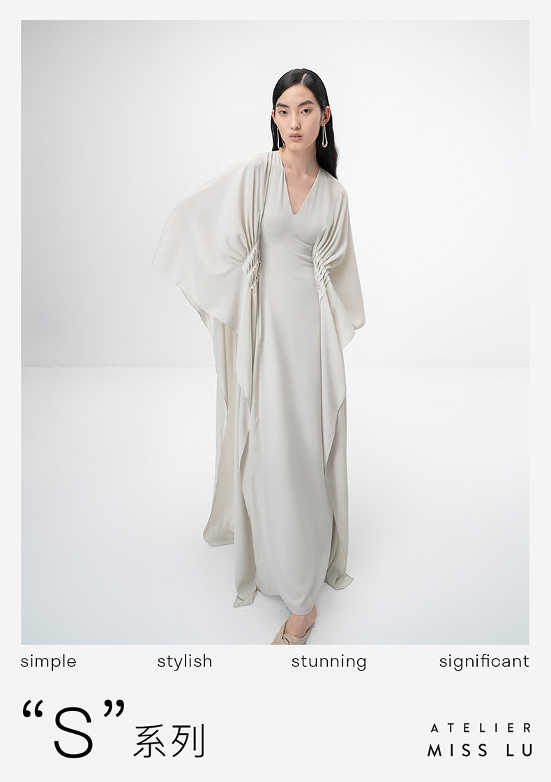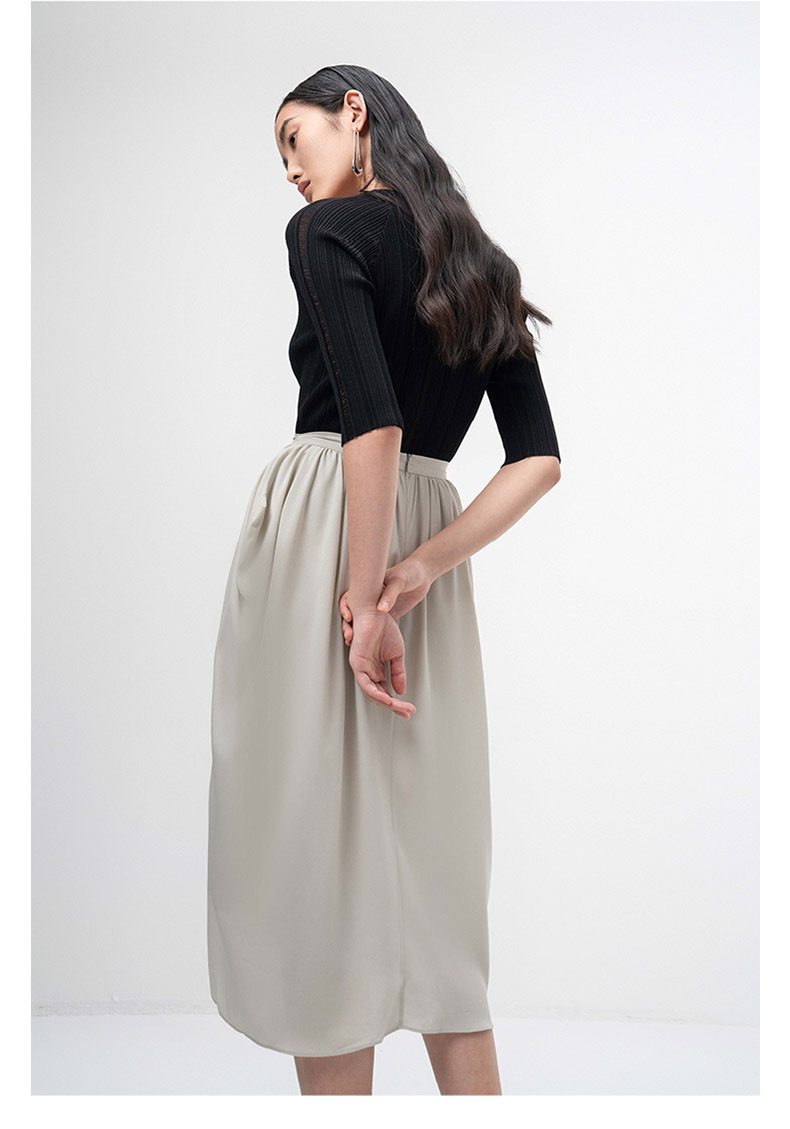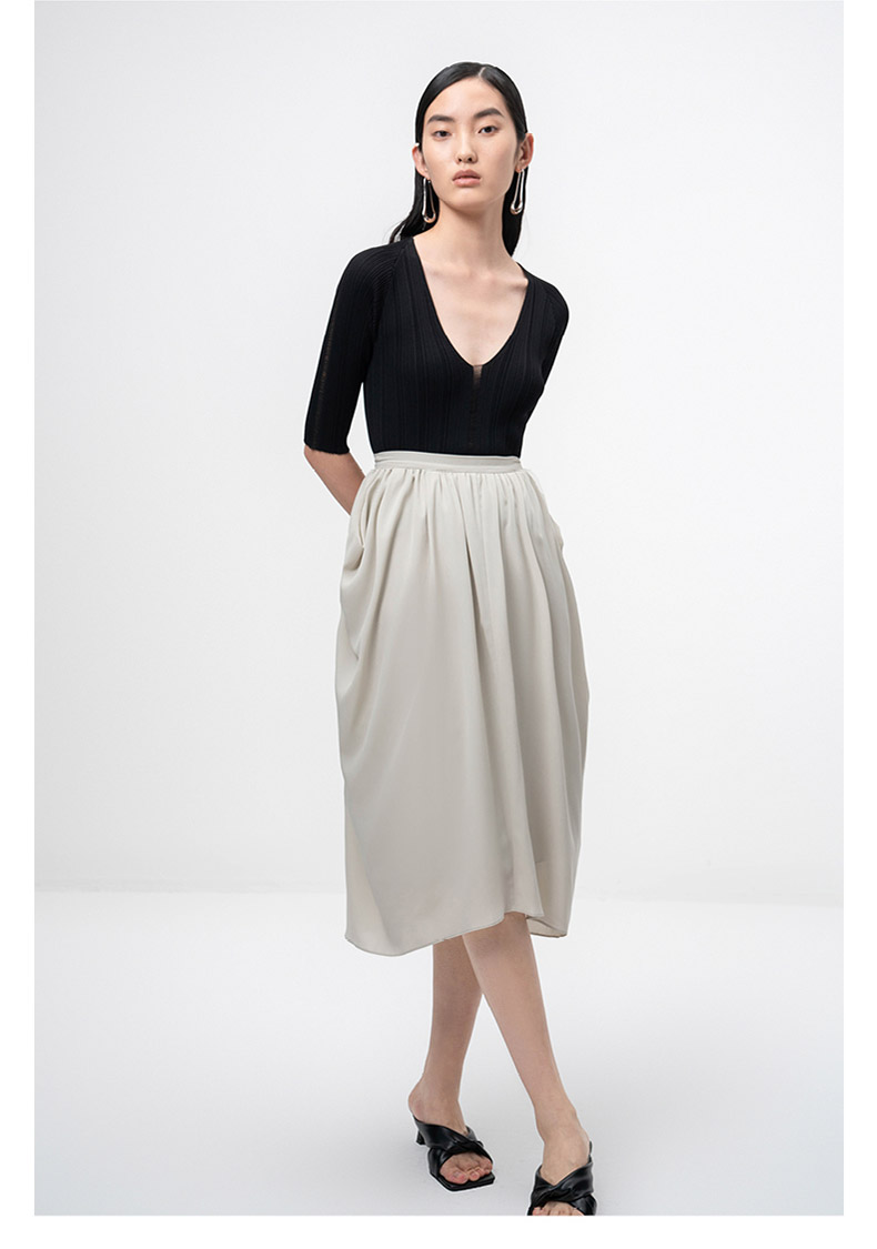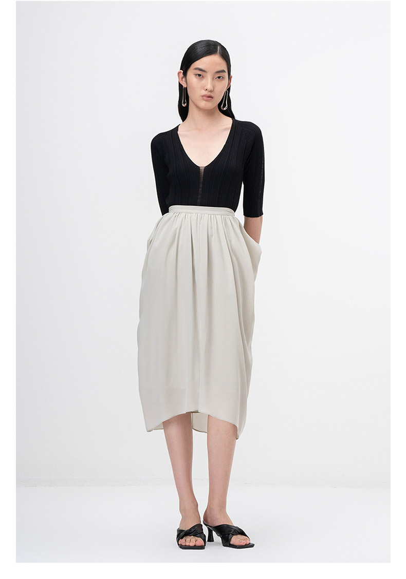 【湖色波纹】云母绿立裁垂褶高腰半裙/000110