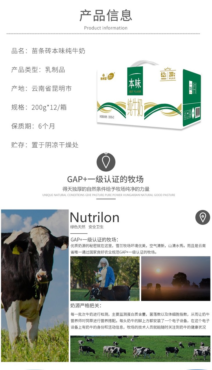 新希望本味纯牛奶 件/12盒