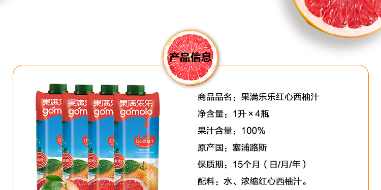 果满乐乐红心西柚汁1L*2瓶