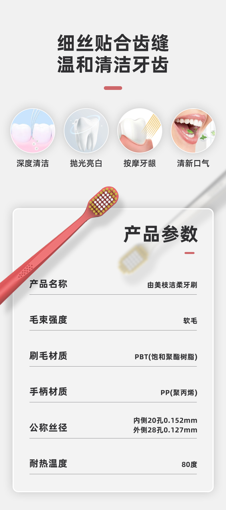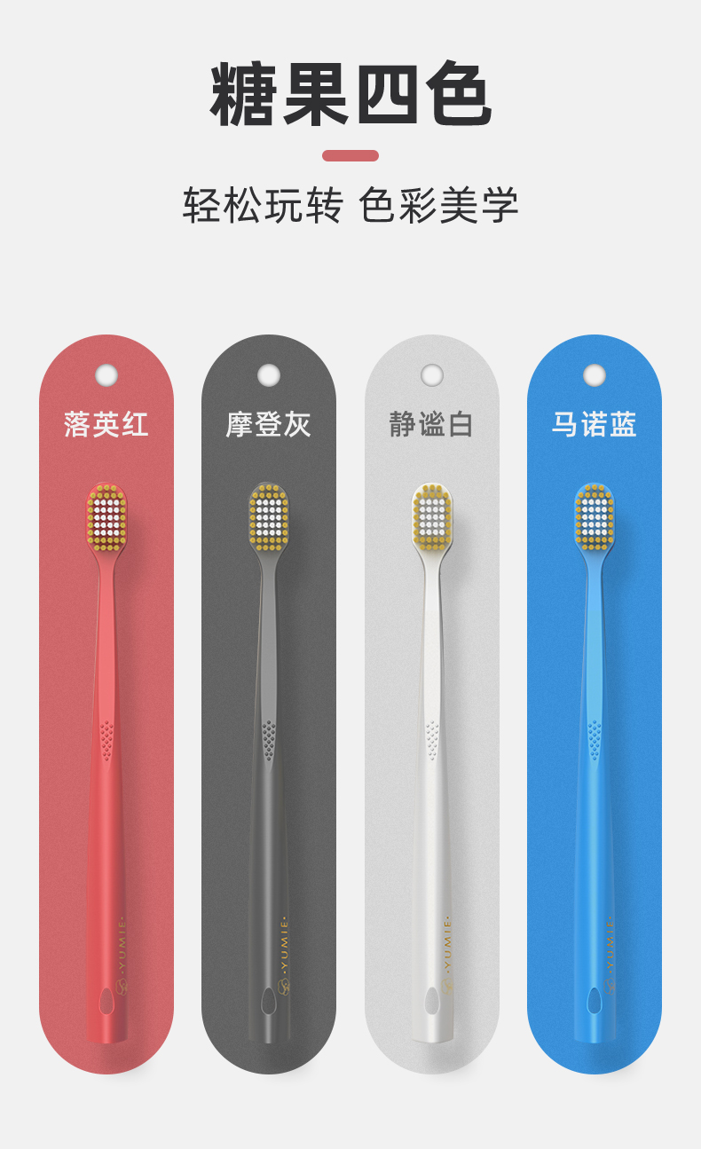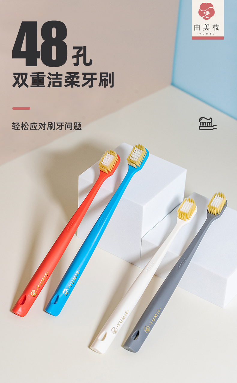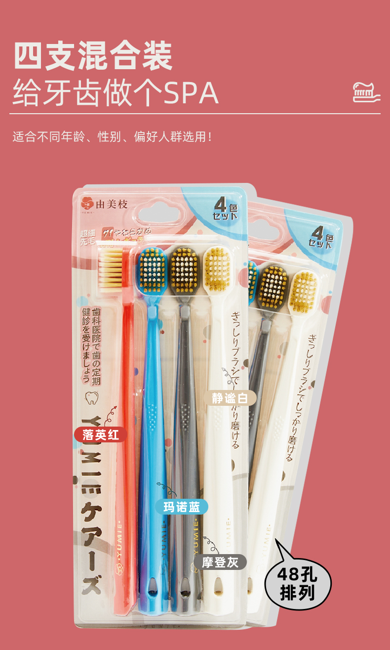 YUMIE由美枝48孔双重洁柔牙刷软毛4支装/117701 舒适宽头外柔内韧