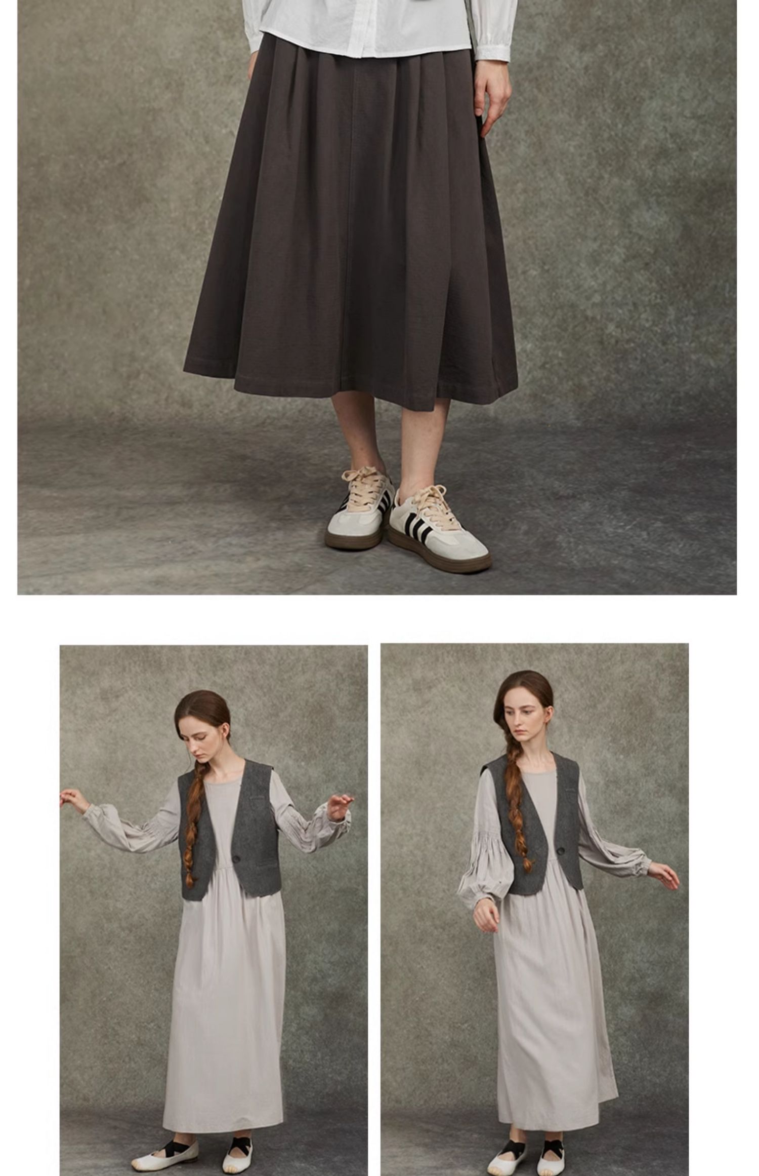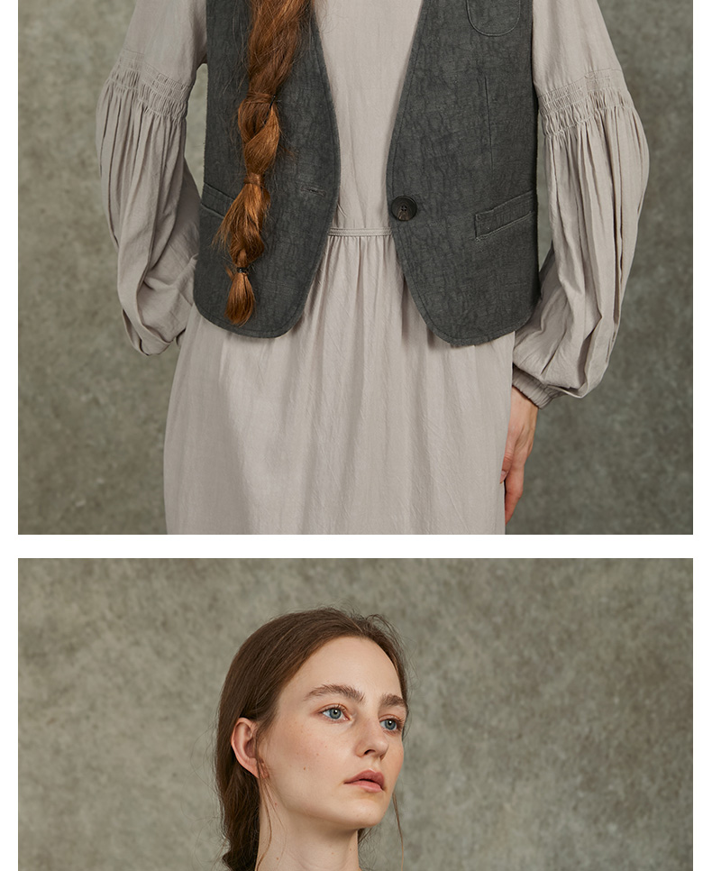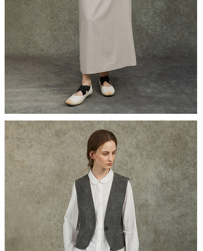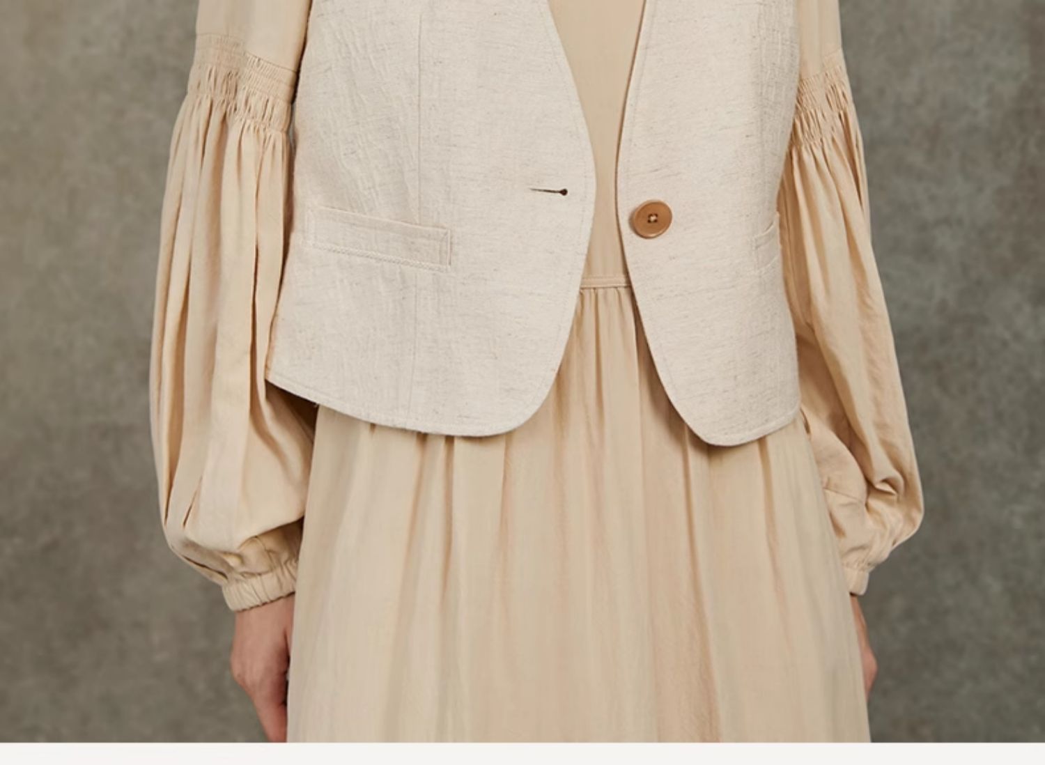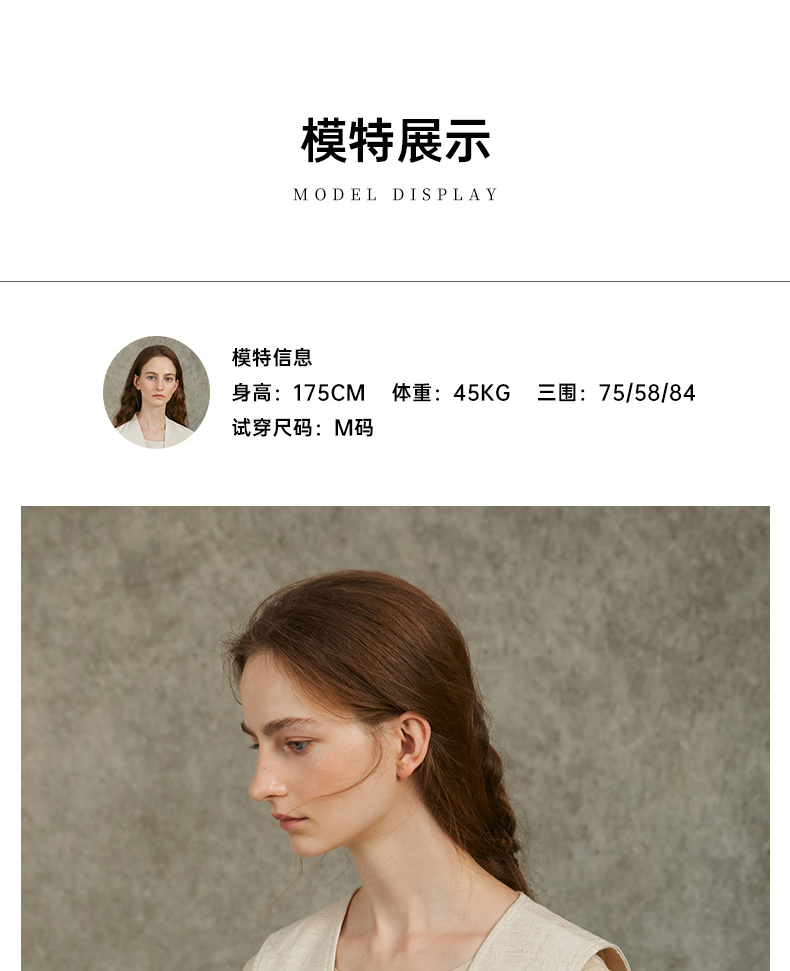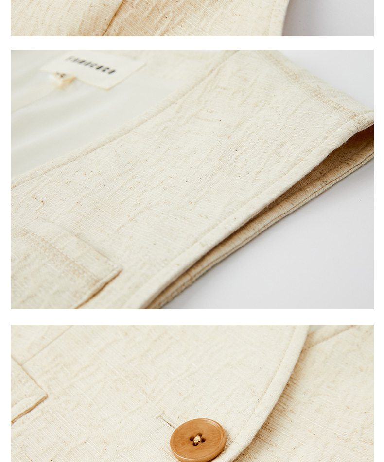 Famecoco文艺范儿深V领设计立体裁剪棉麻百搭马甲春FAC6CA012