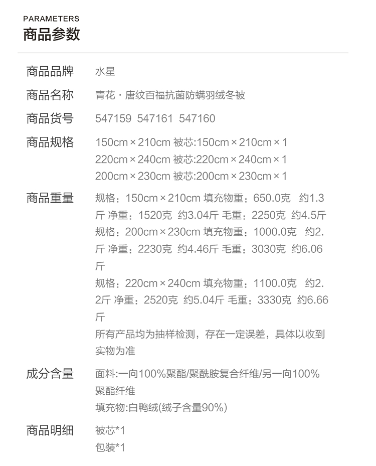 水星家纺A类羽绒被