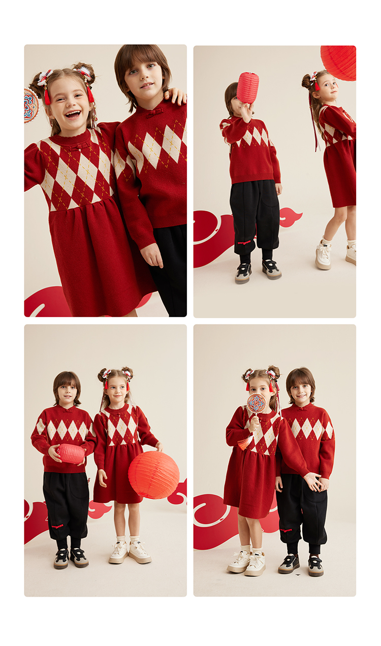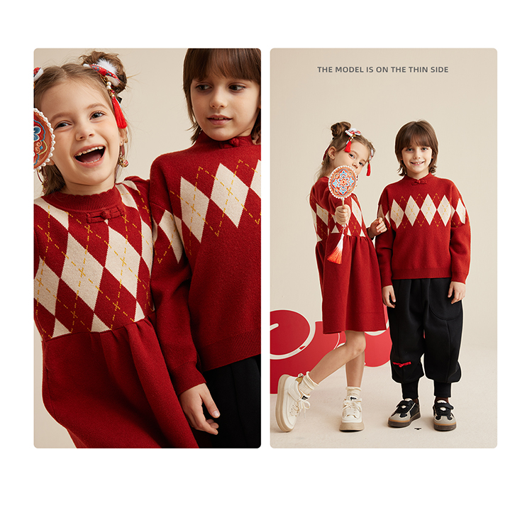fx-复古新中式新年毛衣 连衣裙兄妹装PDMY2301-PDQ2301