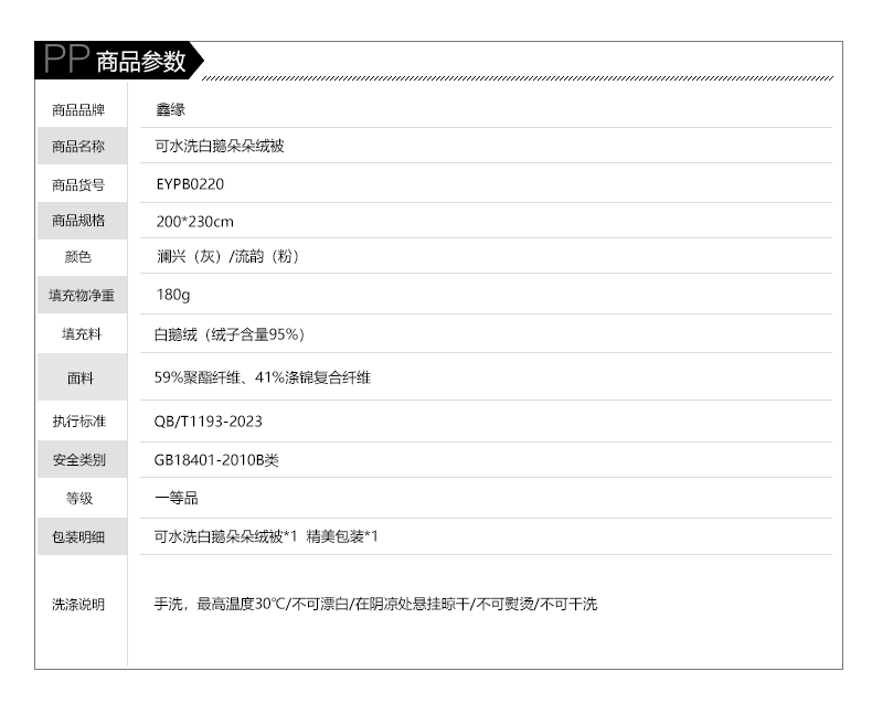 鑫缘 可水洗白鹅朵朵绒被 EYPB0220