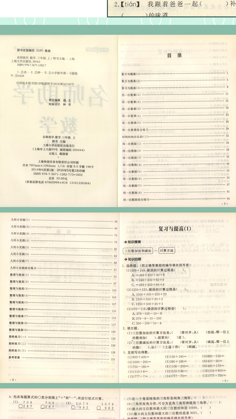 钟书金牌名师助学 数学 3年级/三年级上 数学 第一学期