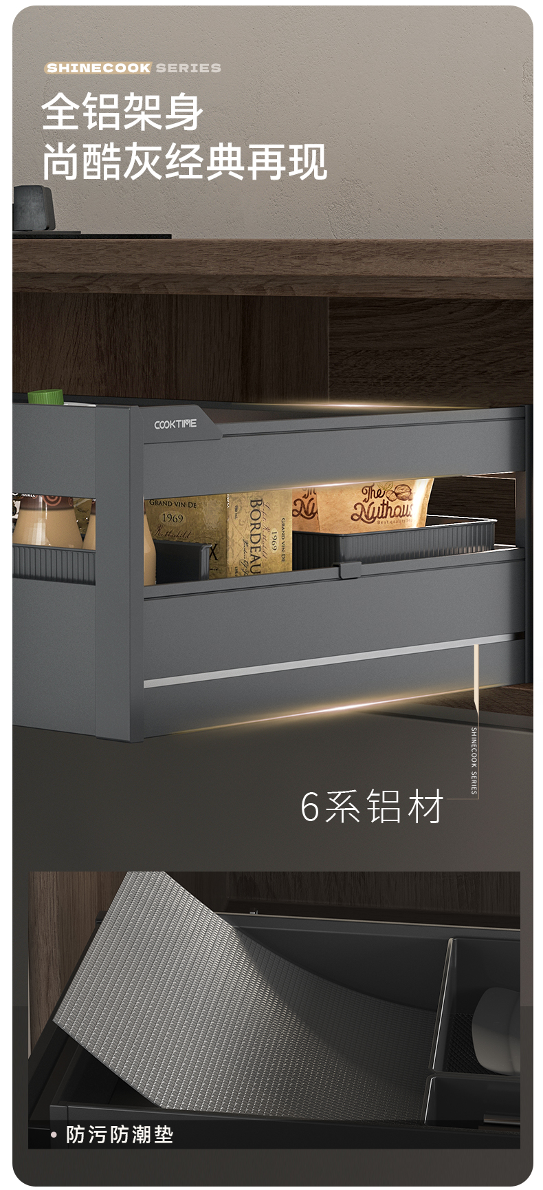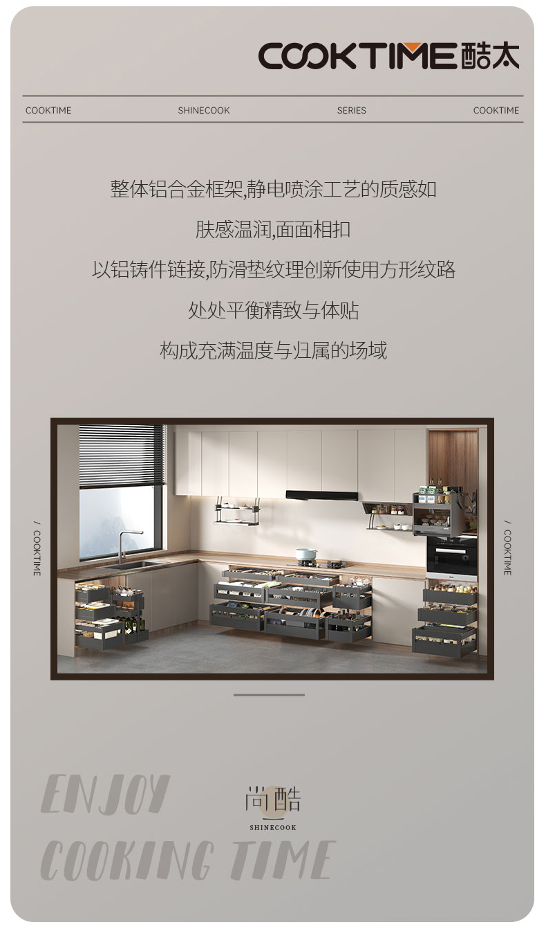 - 酷太坚持8年自主研发,已获得专利证书130项,拥有一套领先市场的厨房收纳系统,为千万中国家庭解决厨房脏乱差,缔造厨房新生活。