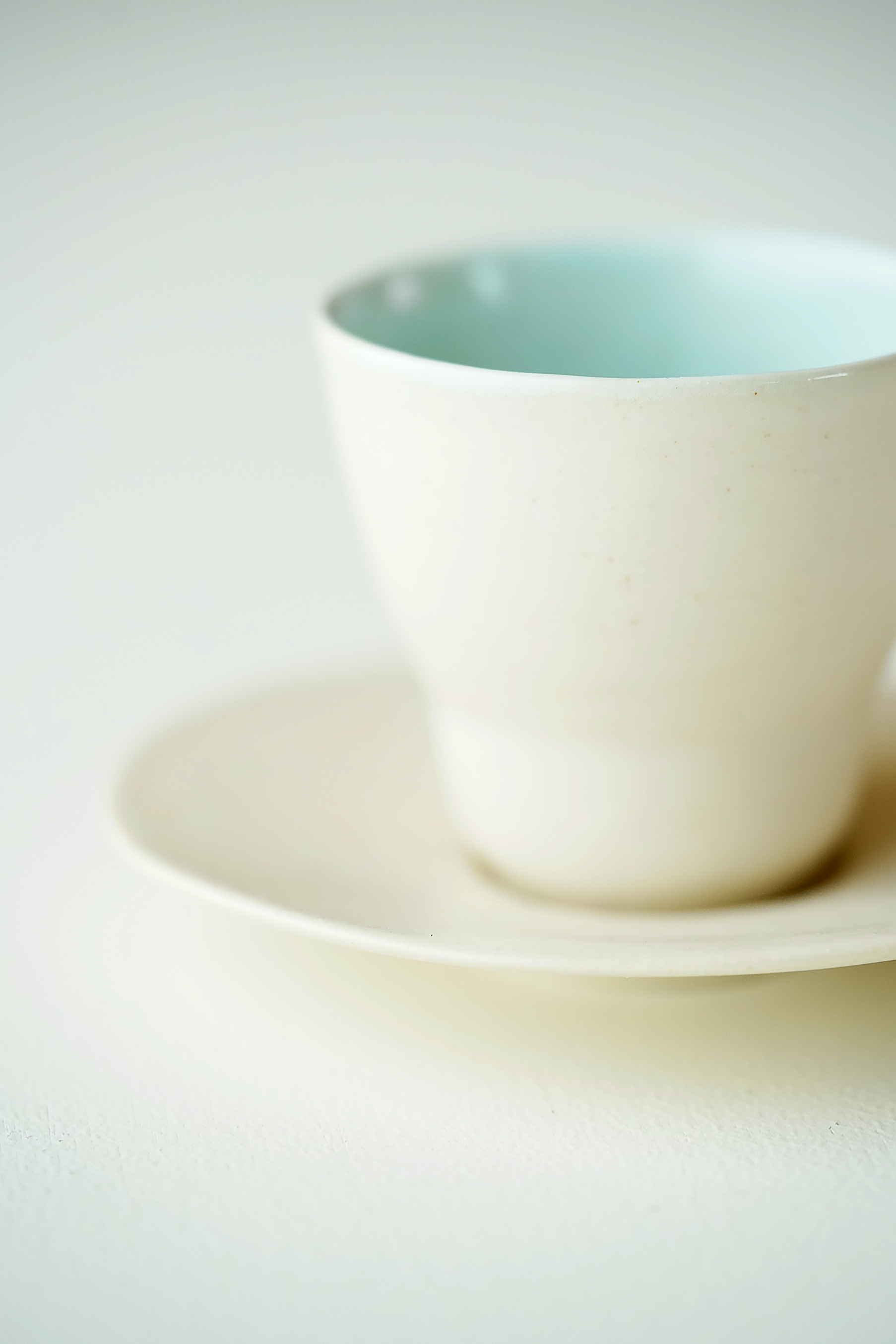 外亚麻釉意大利浓缩杯+亚麻釉高台丸茶托