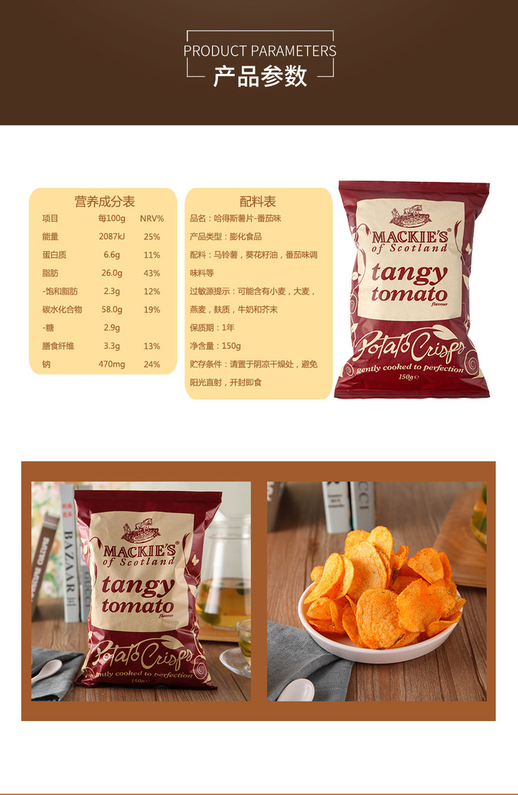 英国进口 MACKIE'S 哈得斯薯片 番茄味