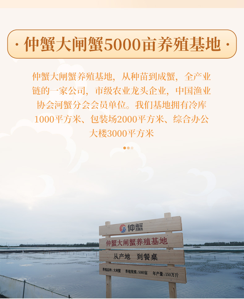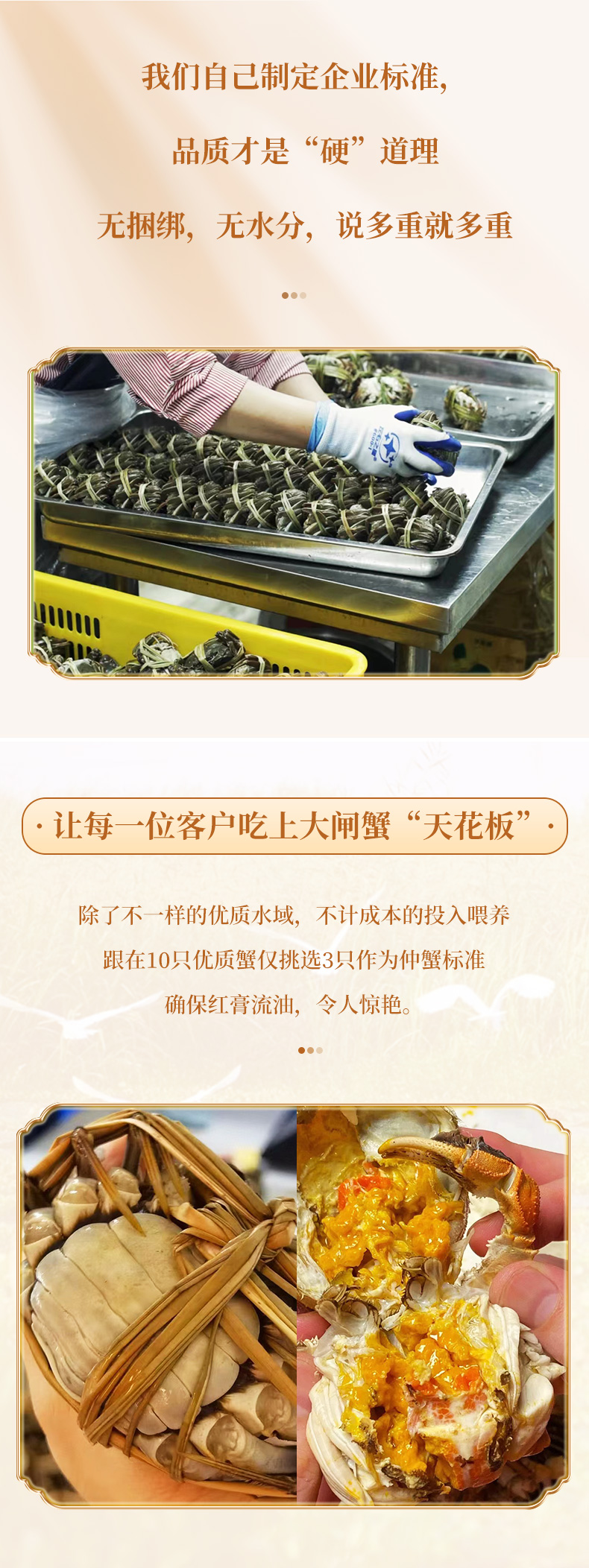 【仲蟹大闸蟹】来自九龙口生态湿地,湖水为国家一级水质,从小蟹开始就投喂90%鱼 + 10%谷物的配比,直到成熟