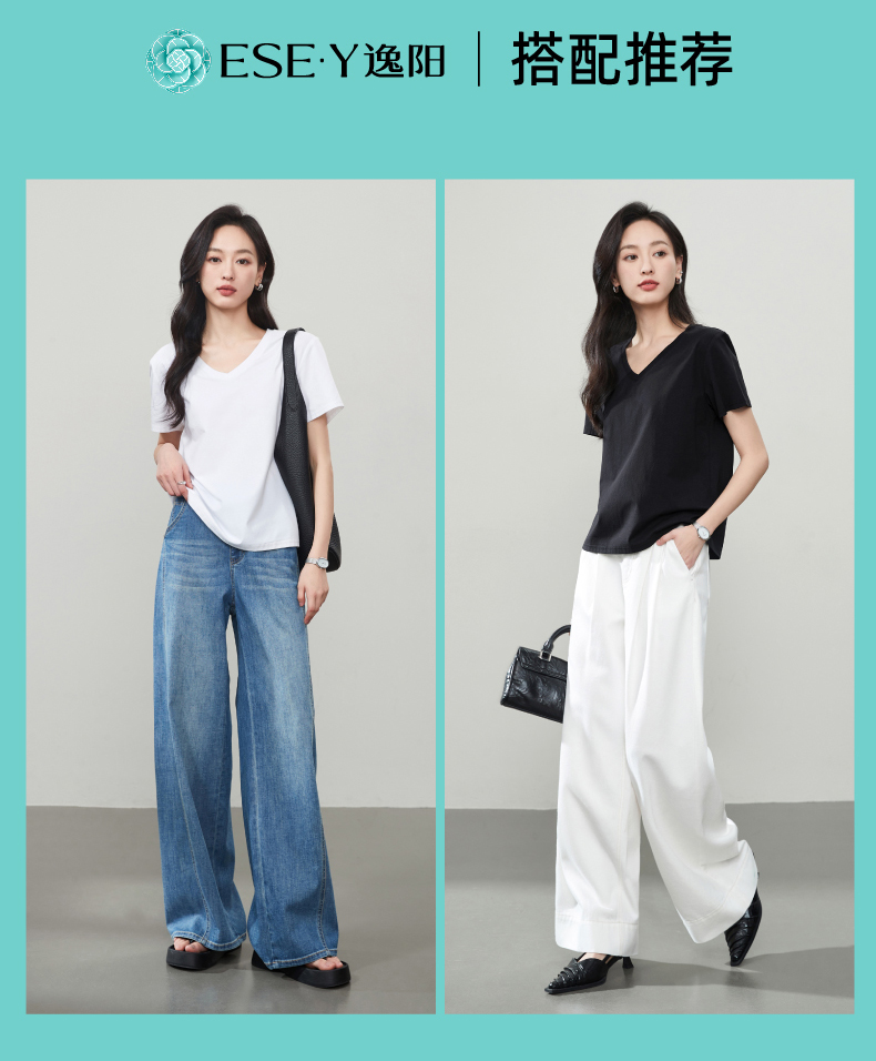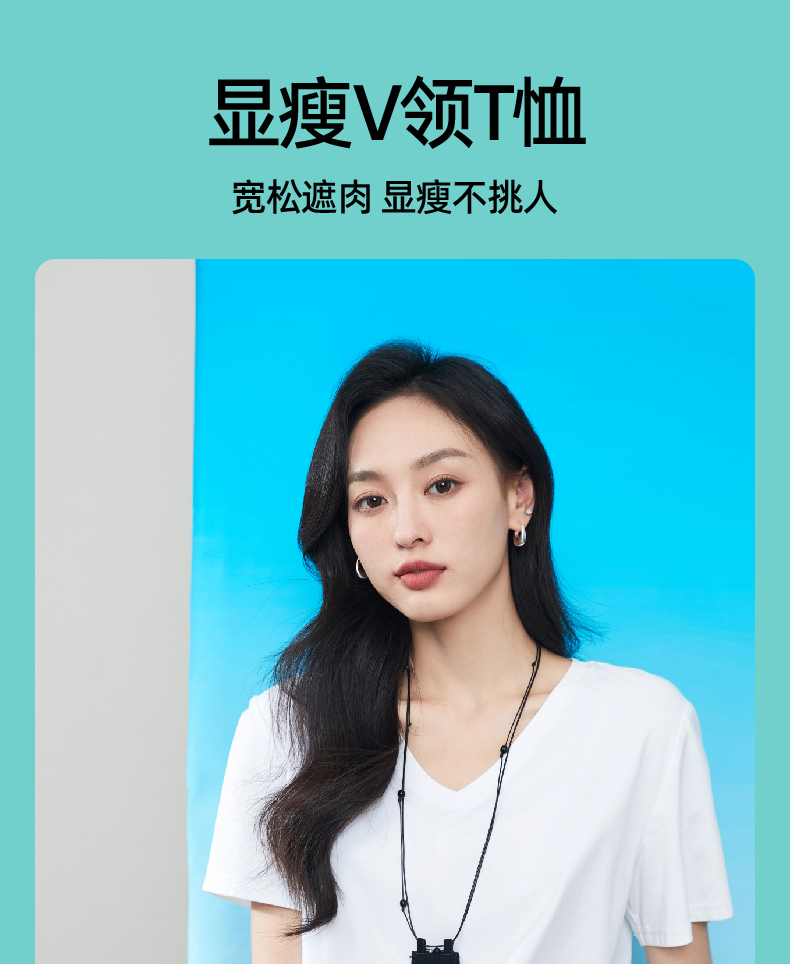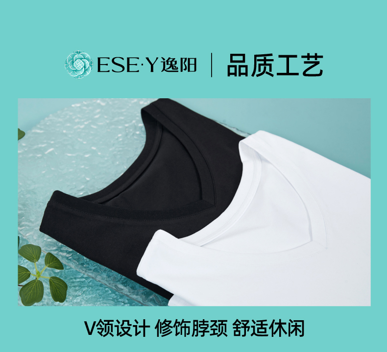 【凉感防晒休闲T恤】逸阳正肩短袖显瘦宽松v领打底上衣3823