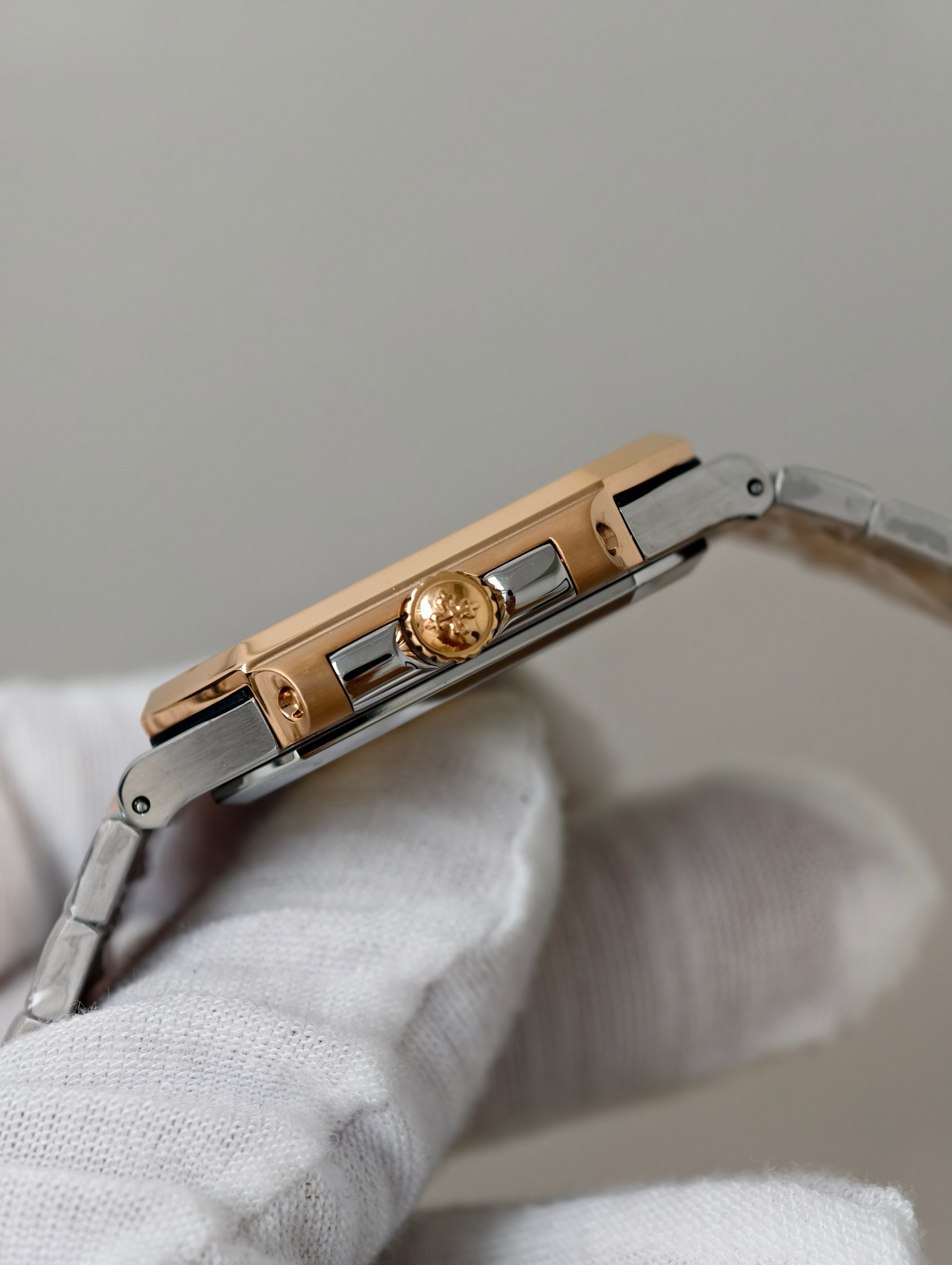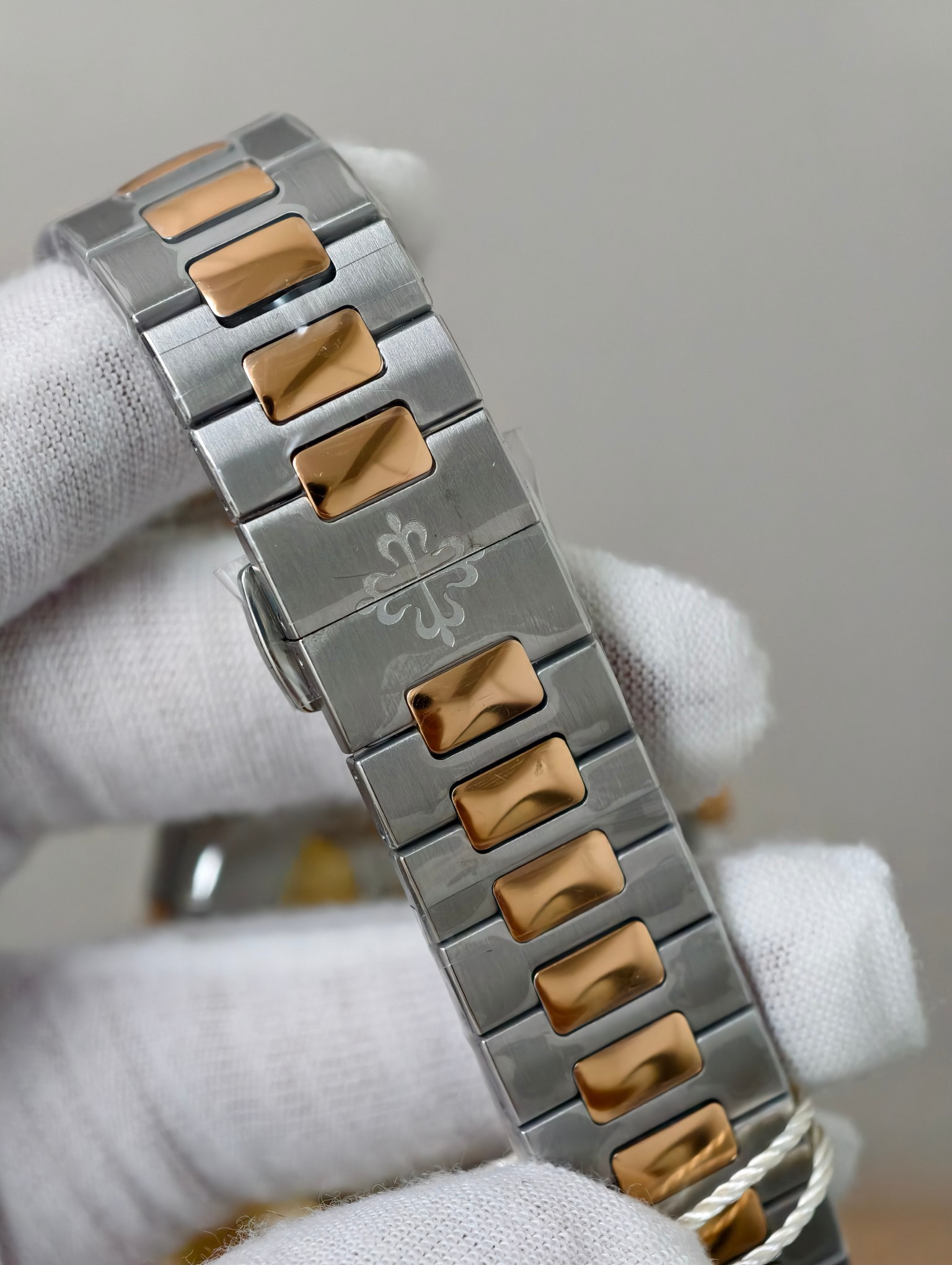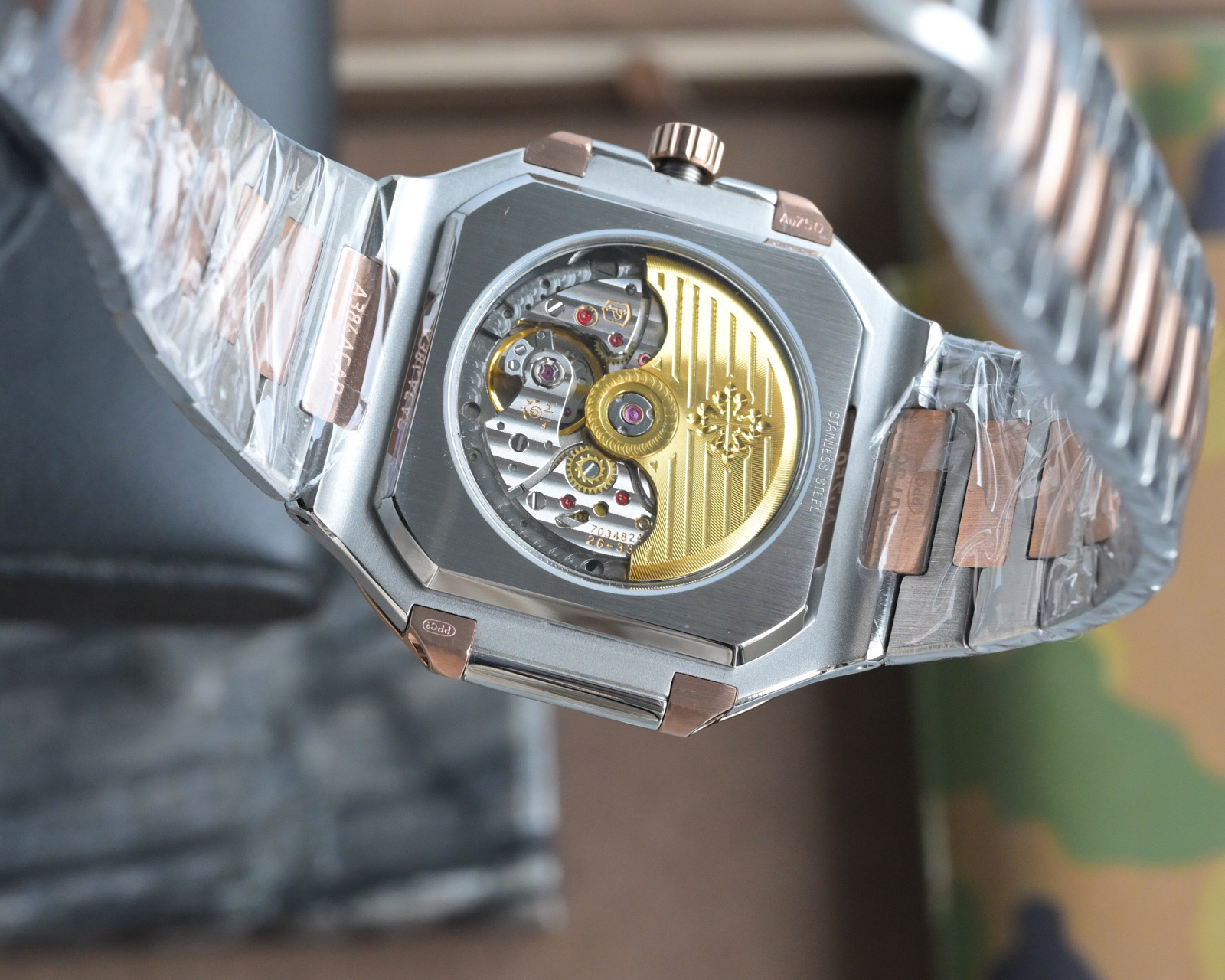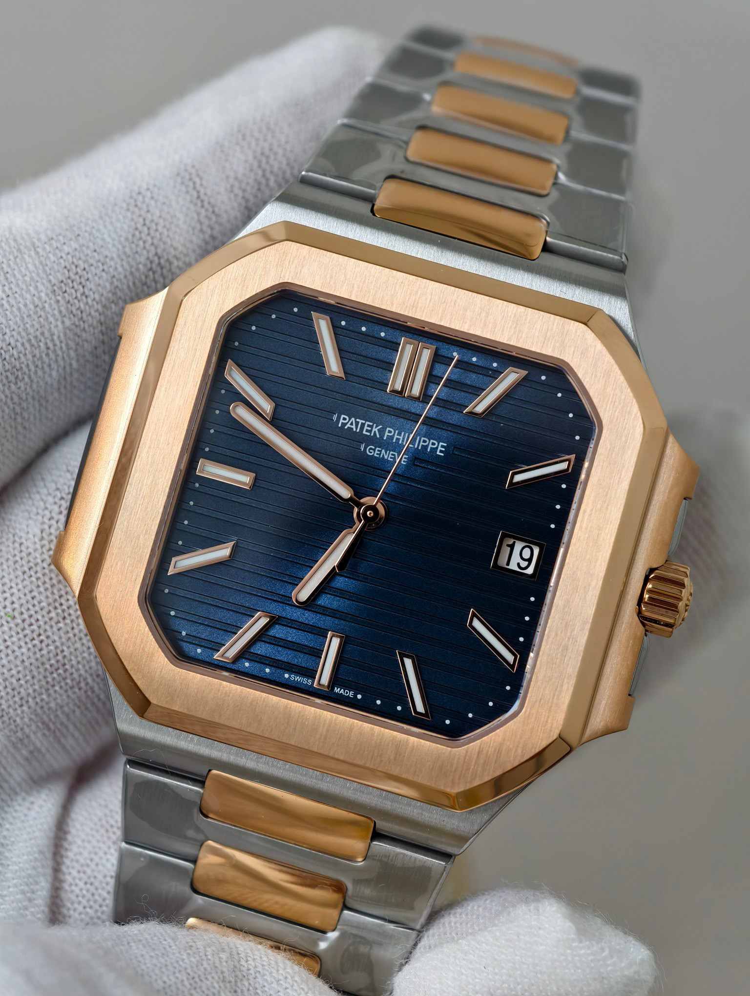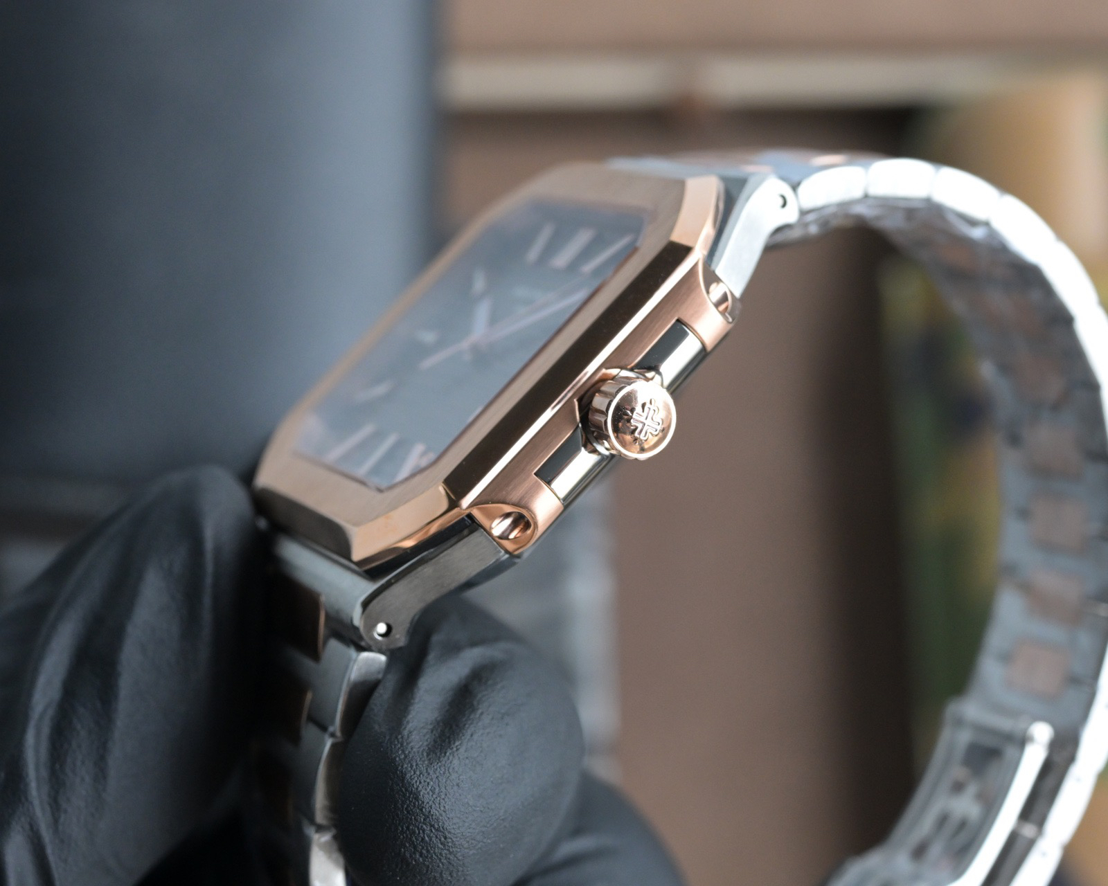 亮点特色:1️⃣机芯:搭载定制9015改Cal.26-330 SC一体机,自动上链机芯。2️⃣钢带:316L定制级人体工程学表带,新扣款式。3️⃣表壳:尺寸45毫米厚度仅8.8mm,为表壳对角线长度(即10点位至4点位),因为表壳近似于方形,上下边的宽度会小于这一数值,所以视觉效果并不是很大PPF Factory launches new series CUBITUS 5821 wristwatch from Patek Philippe