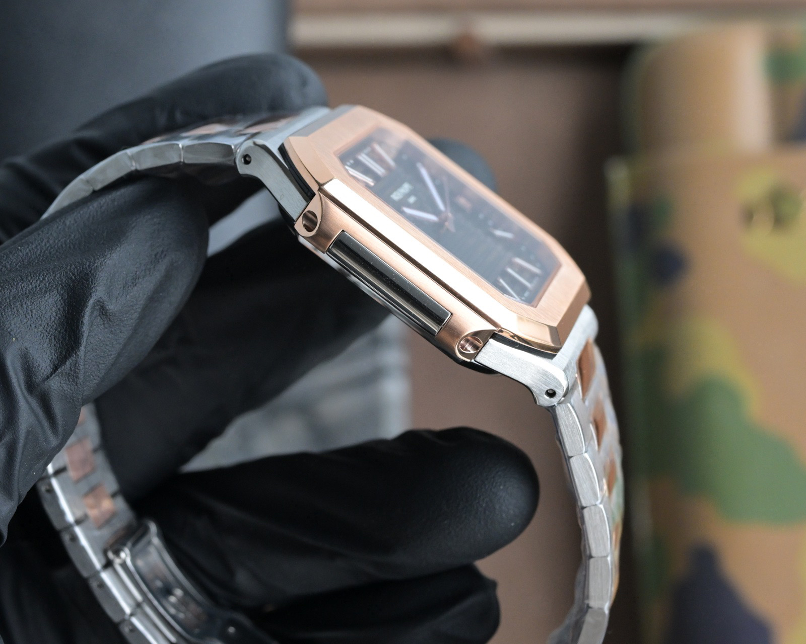 Highlights and Features: 1 ️⃣ Movement: Equipped with a customized 9015 modified Cal.26-330 SC all-in-one machine, with an automatic winding movement. two ️⃣ Steel strap: 316L customized ergonomic strap, new buckle style. three ️⃣ Case: The size is 45mm and the thickness is only 8.8mm, which is the diagonal length of the case (i.e. from 10 o'clock to 4 o'clock). Because the case is approximately square, the width of the upper and lower sides will be smaller than this value, so the visual effect is not very large