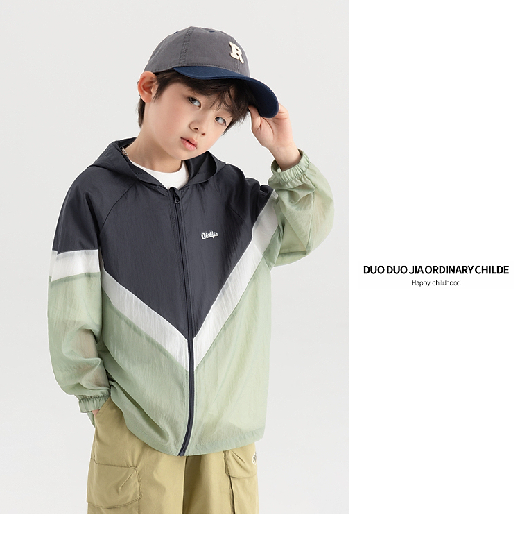 【件件底价~团购54.9元】多多家男童轻薄外套2025新款夏款儿童拼接撞色防晒衣男孩皮肤衣潮10645