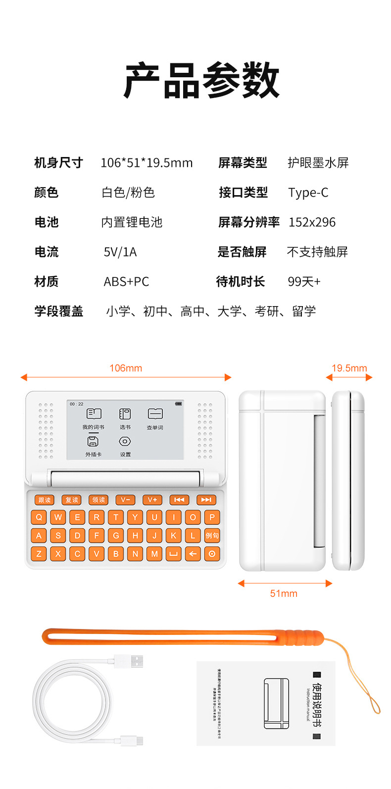 【随时记 轻松背|让碎片时间更高效】真墨瓶英语词典机 背单词神器真人发音 电子护眼墨水屏电子词典 同步小初高英语 可便携携带 专注背单词带上你的专属学习搭子